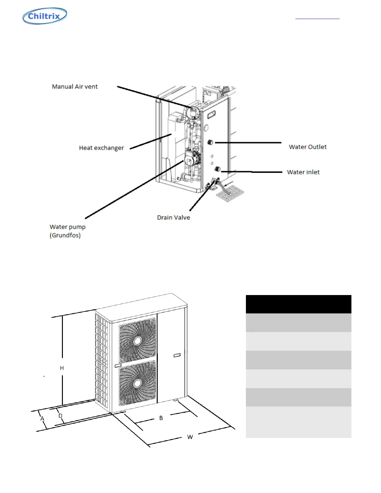 Chiltrix CX50 - CX50 Components Overview; Internal and External Components; Unit Dimensions and Specifications