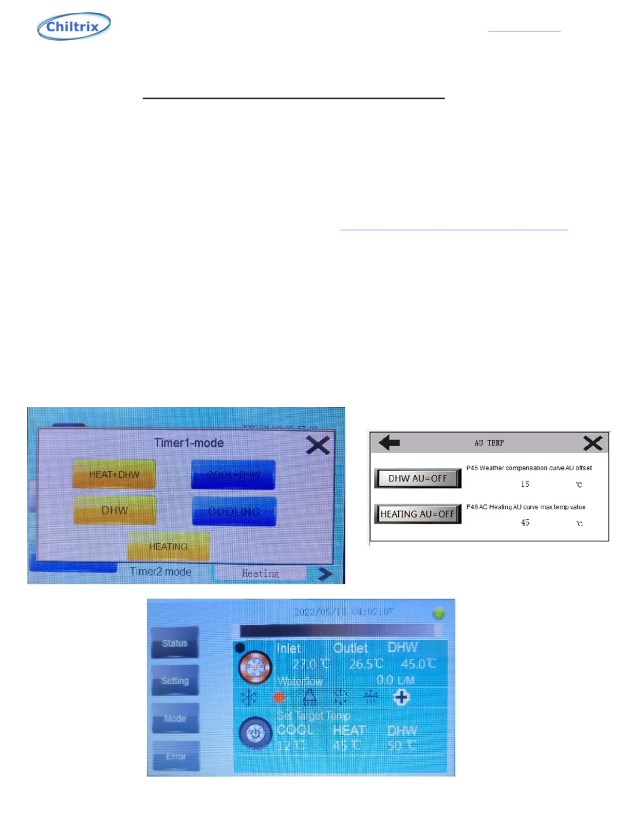 on it then you will enter the AU TEMP mode screen. You will need to enable “HEATING AU” to ON. With