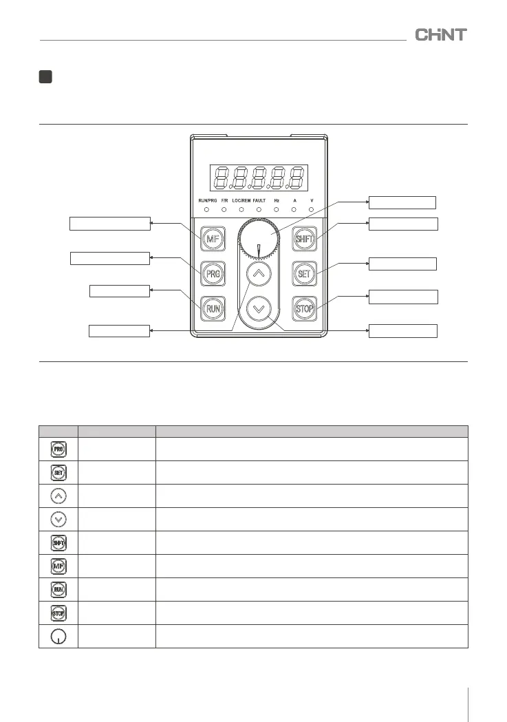 parameters. There are 8 keys and a navigation key on the inverter operation panel, and the function definition