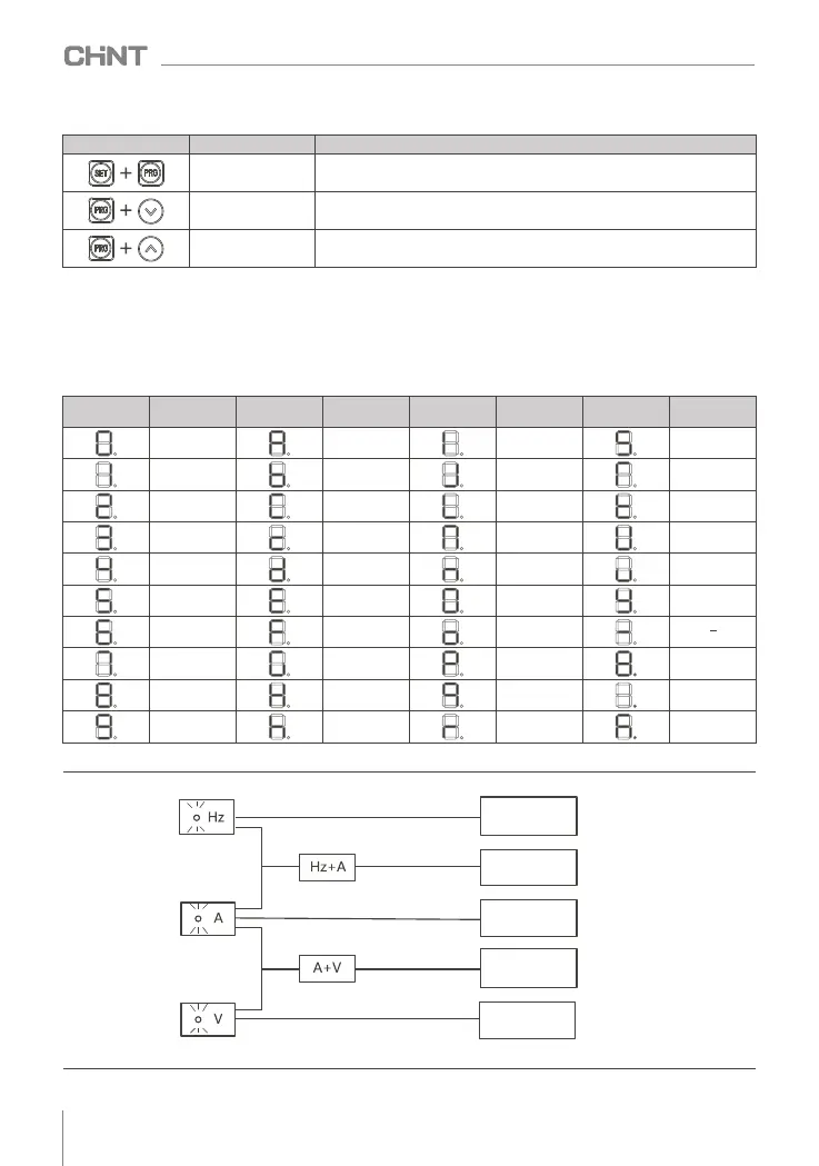 The 3 unit indicators correspond to Hz, A, V and other unit indications, as shown in Figure 7.2 .