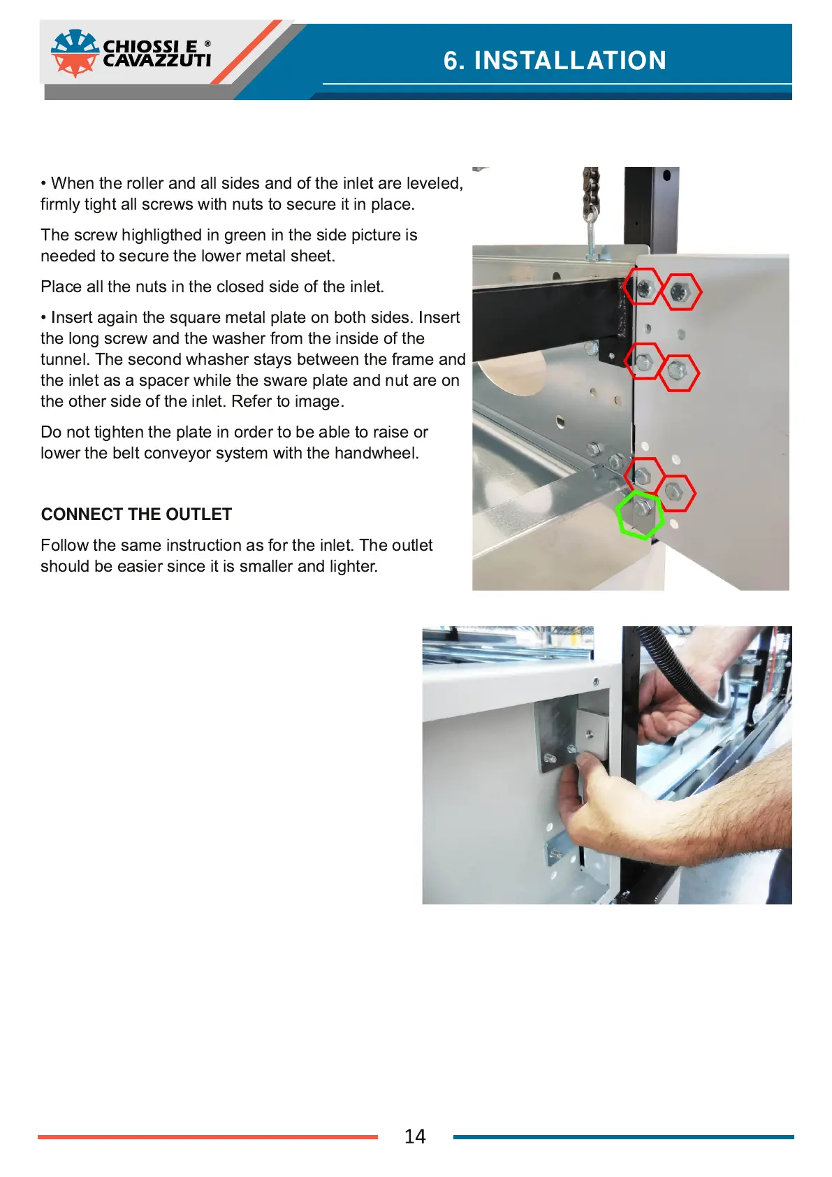 • When the roller and all sides and of the inlet are leveled,