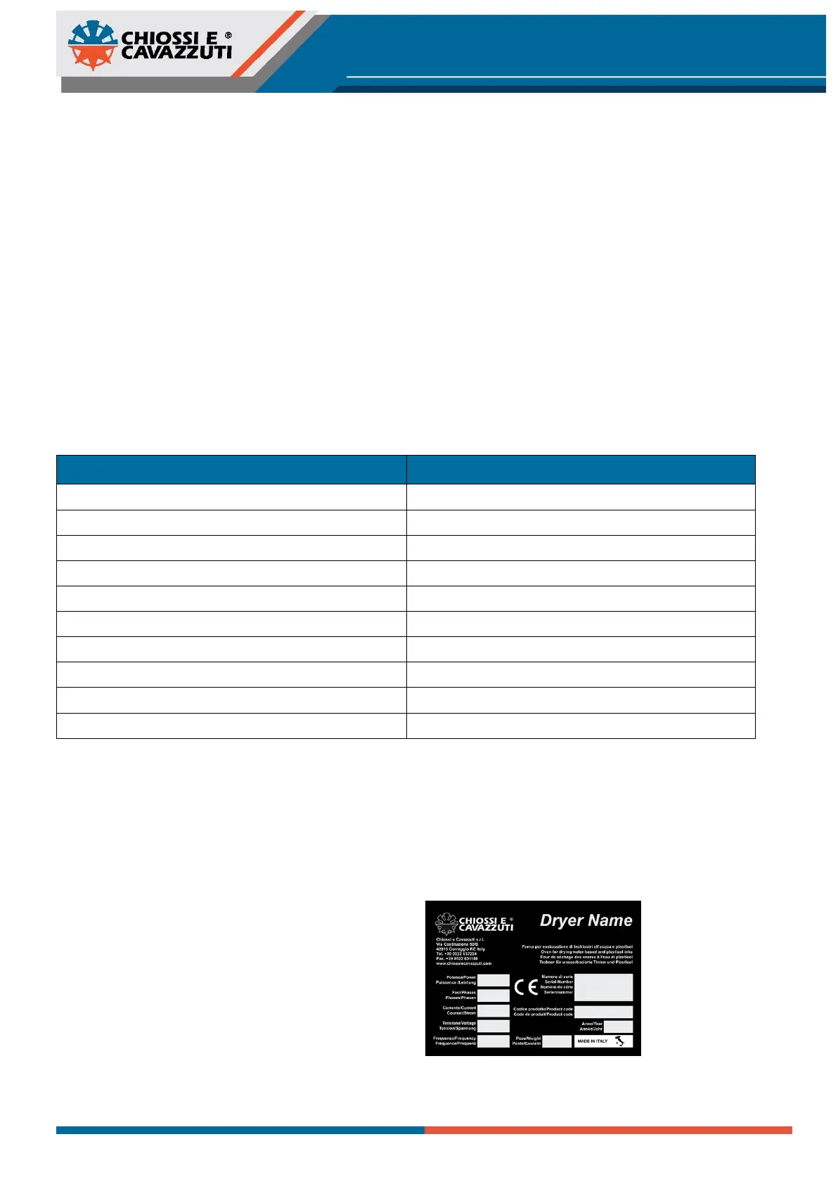 La targhetta di identificazione della macchina è posta sul lato sinistro della cassetta elettrica. Vi è indicato: