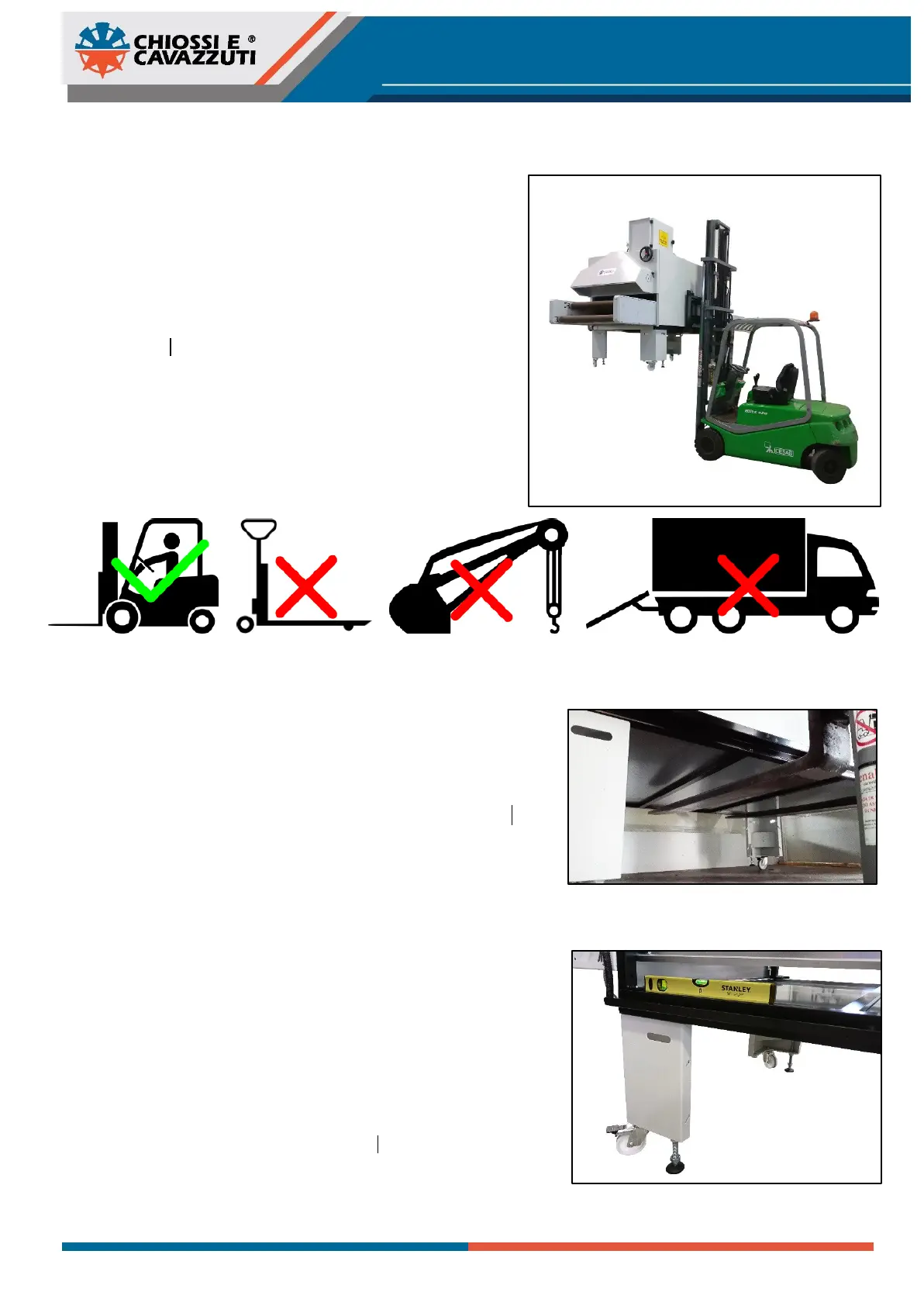 Non utilizzare Transpallet, gru o pedane idrauliche.