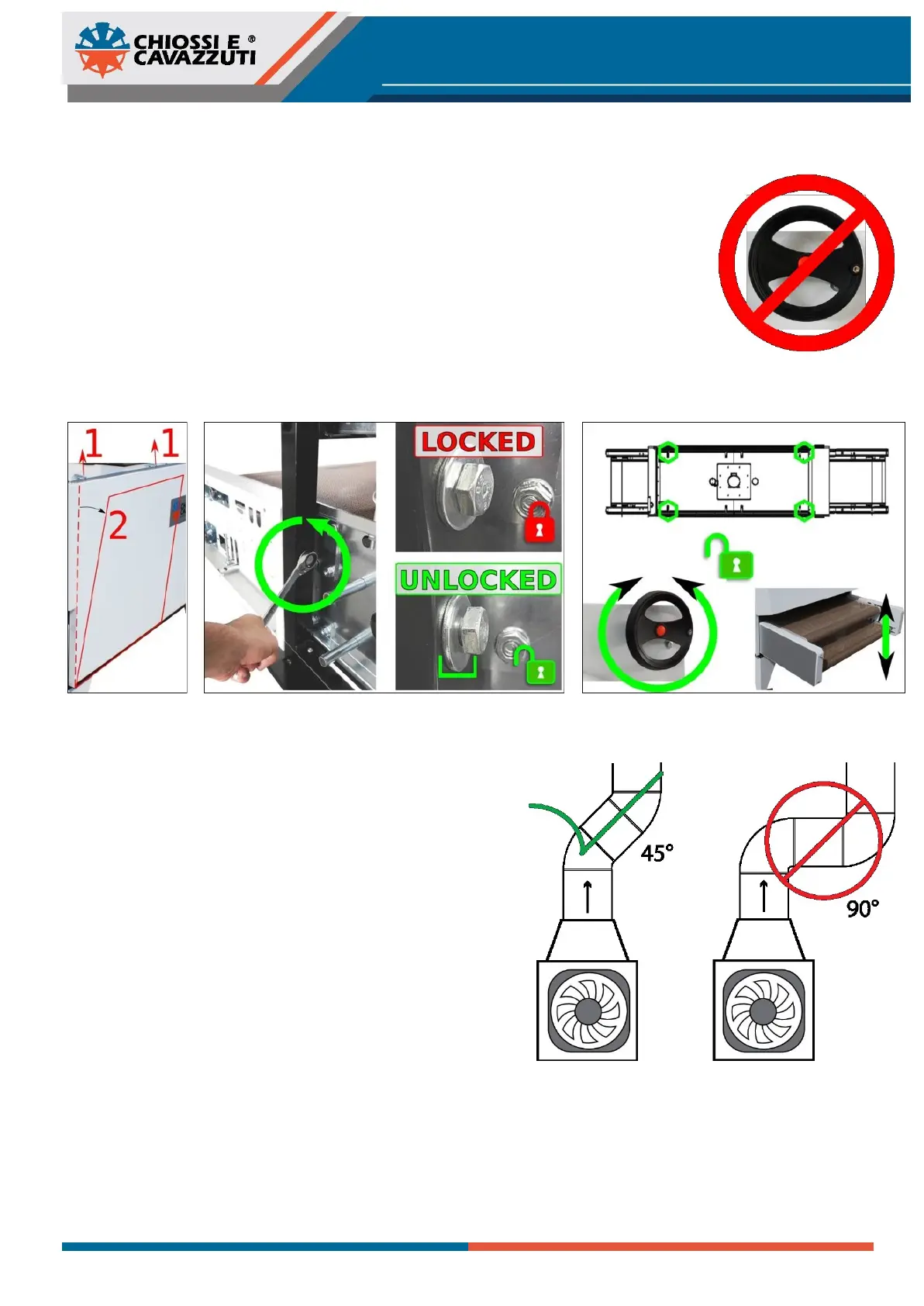 IMPORTANTE: non forzare il volantino di sollevamento del nastro trasportatore!