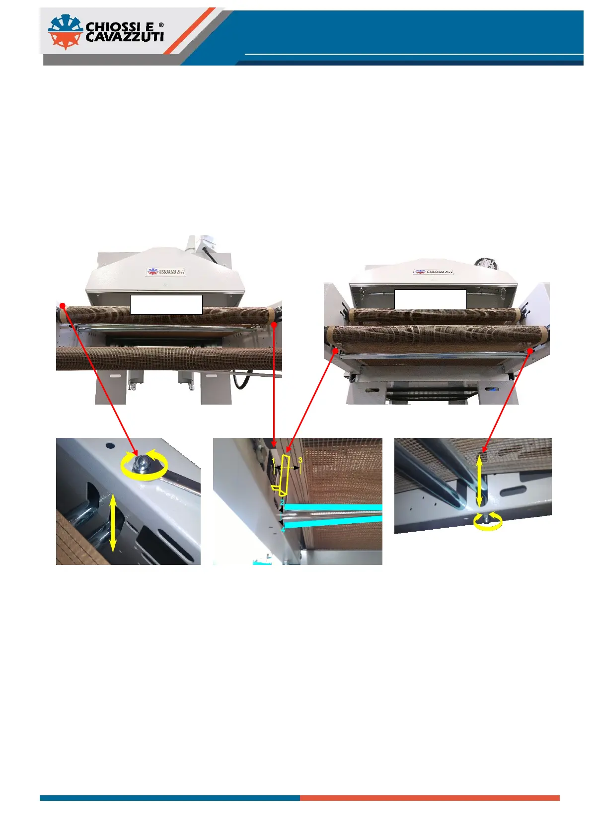Le viti di registro di ogni tubo non comandato dal centranastro si trovano in posizione opposta al motore e al centranastro.