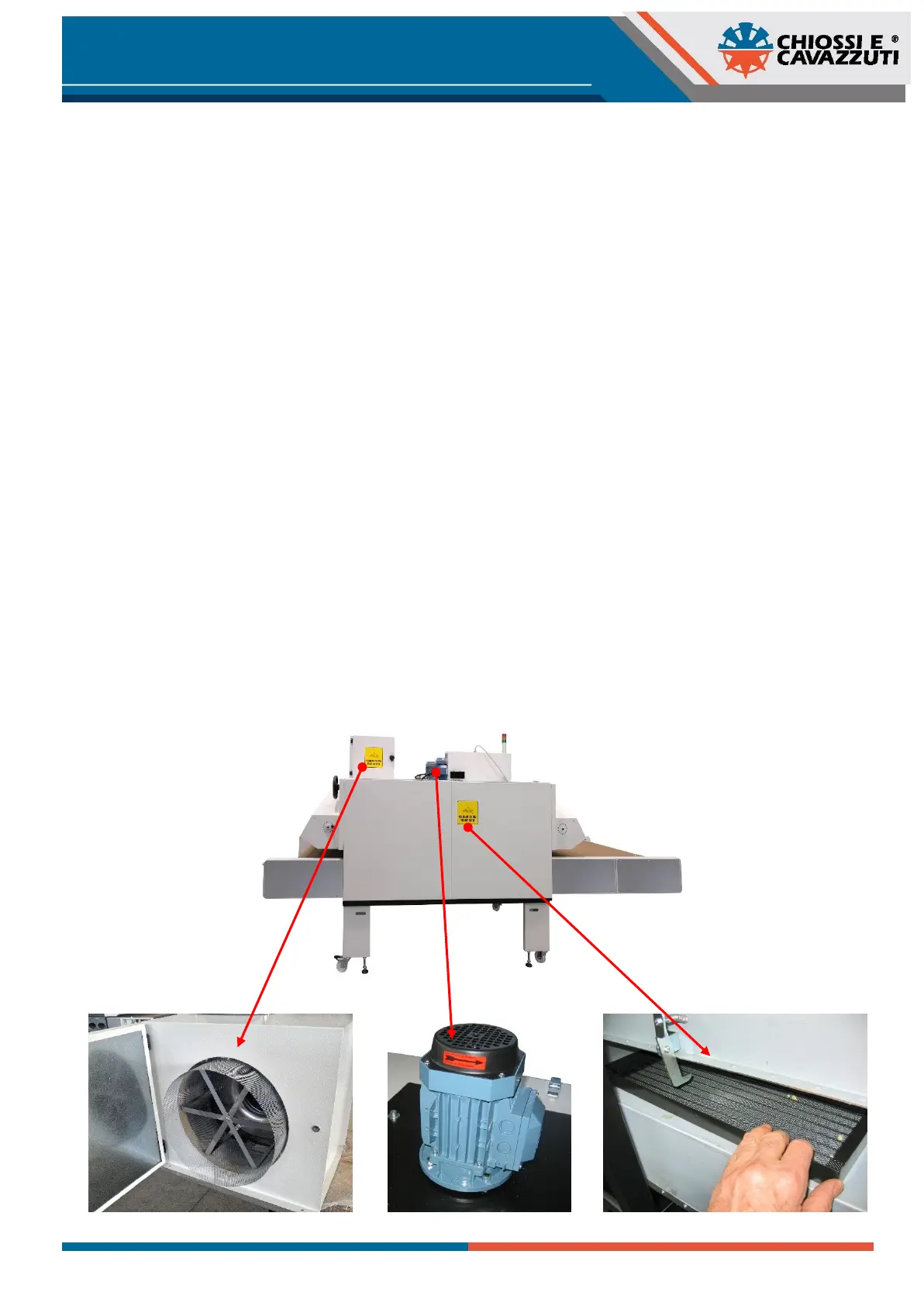 IMPORTANTE: Verificare sempre che il senso di rotazione del motore ventilanti segua la freccia rossa riportata sopra al