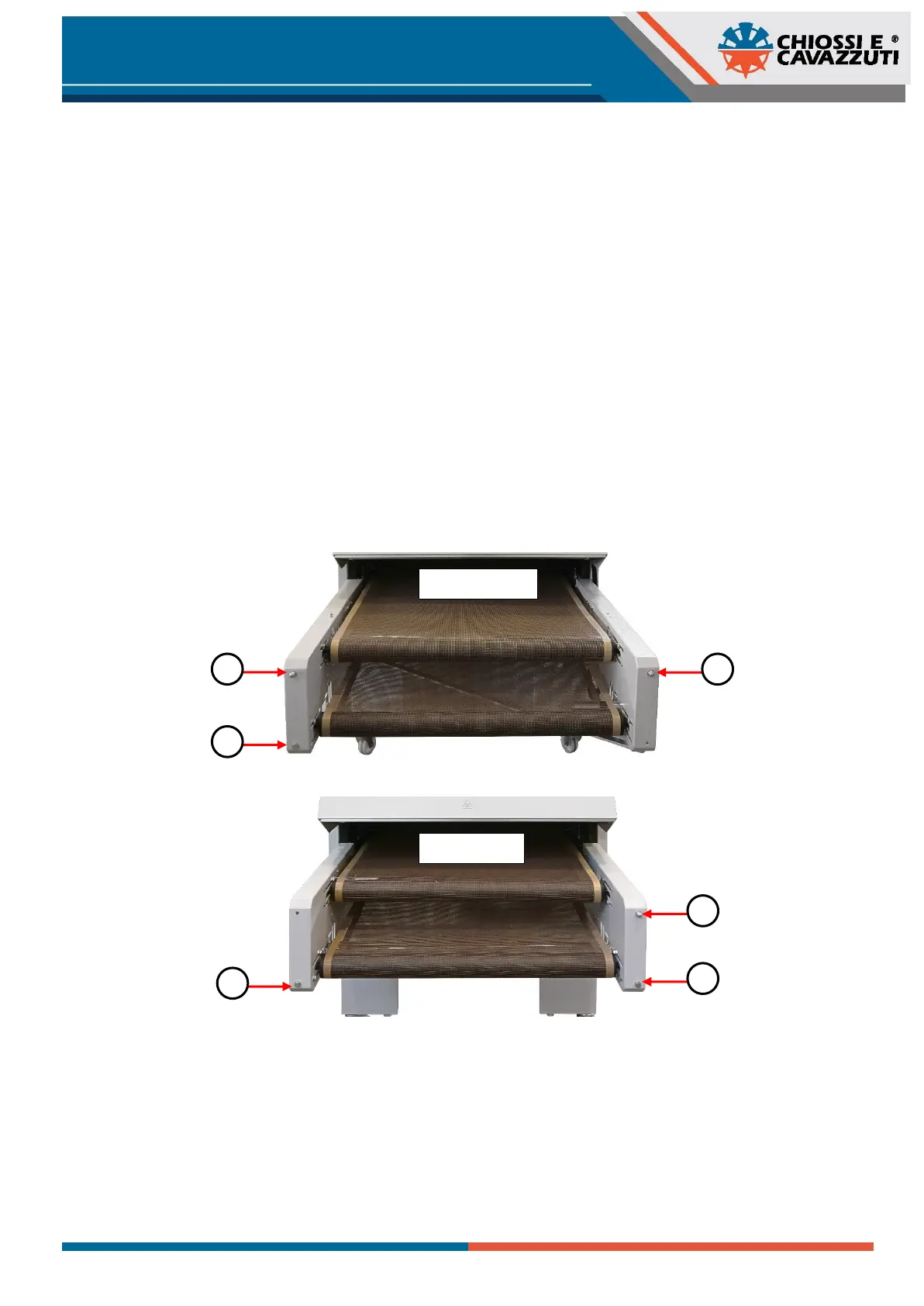 When available, the motor of the lower belt is located in the inlet of the tunnel and has only one registration screw in front