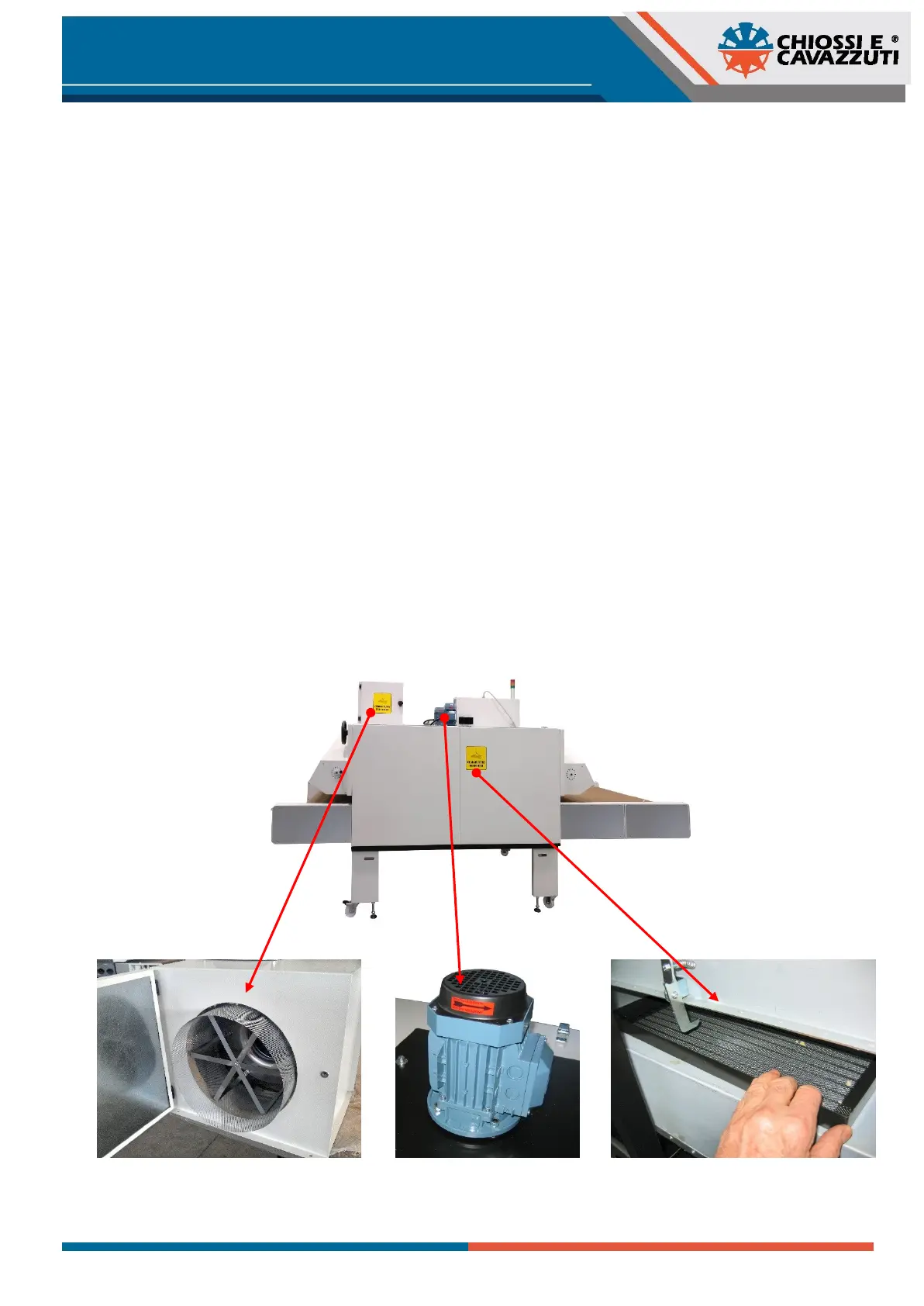 IMPORTANT: Always verify that the sense of rotation of the ventilation motors follows the red arrow on top. If not, switch