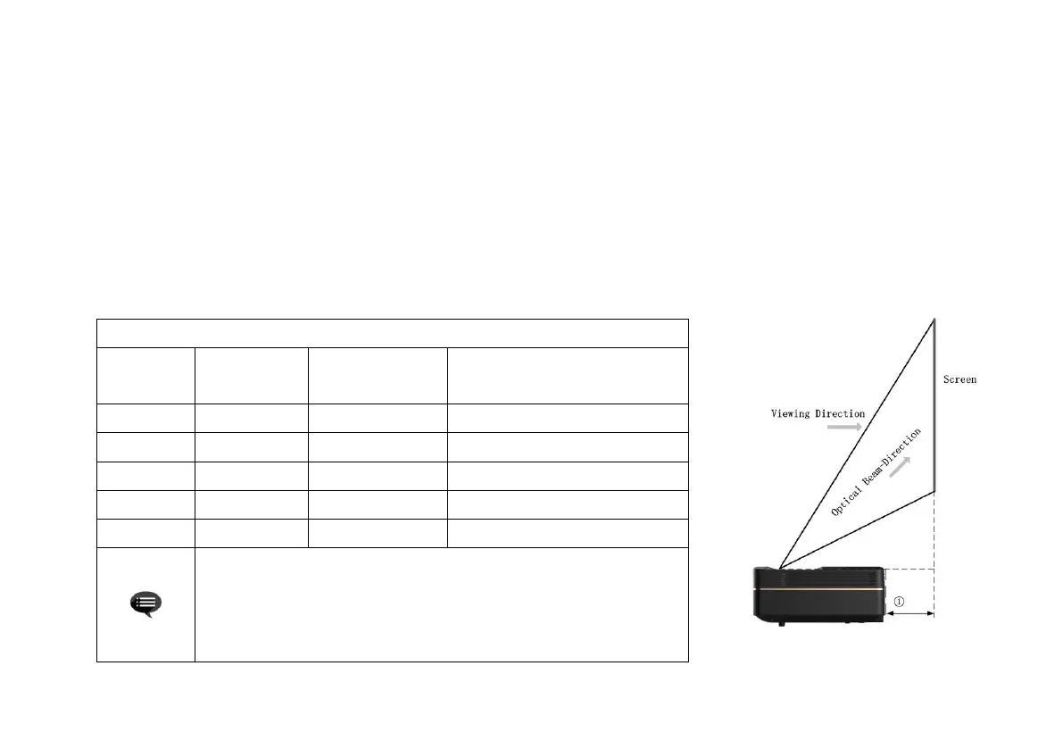 a. Confirm display size and projector position: confirm display size and projector position according to screen size and installation environment.