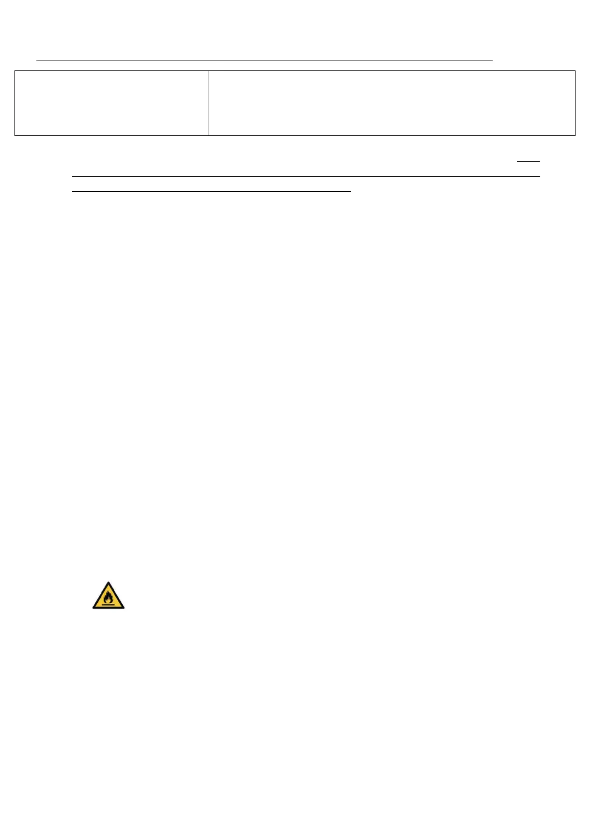 Warning/ Risk of fire/ Flammable materials