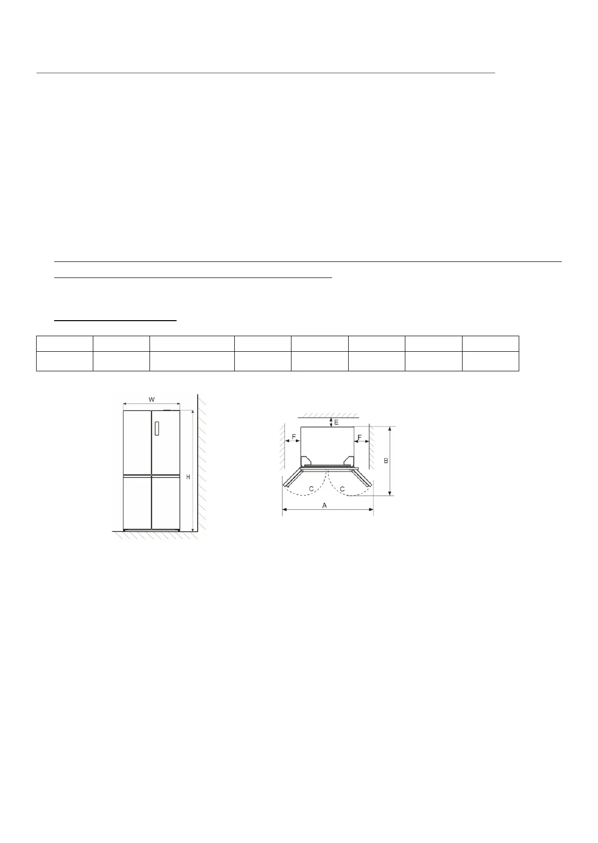 refrigerator to allow proper air ventilation. Insufficient space will result in cooling