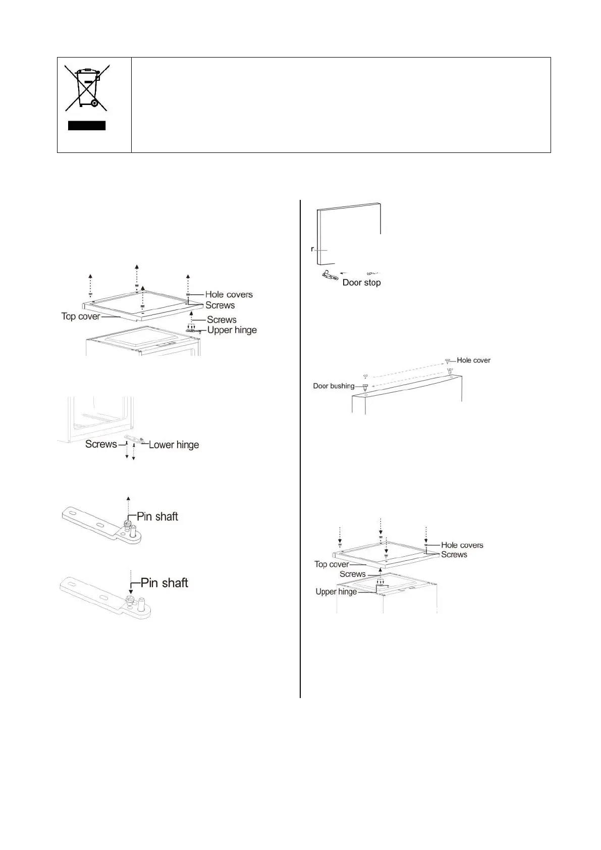 6. Inserire il perno nel foro sinistro della cerniera inferiore,