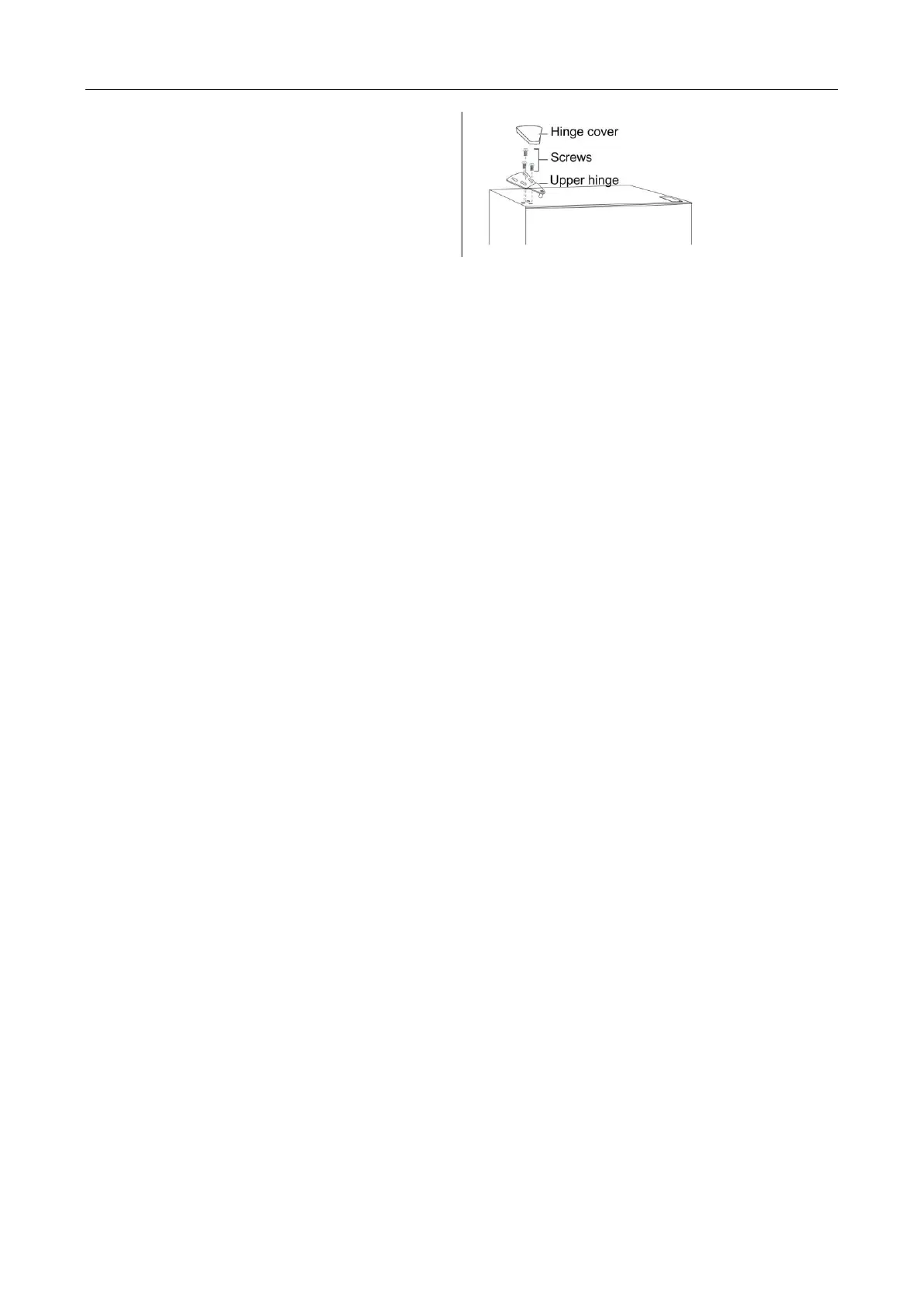 20. Install the hinge cover over the hinge on the top left