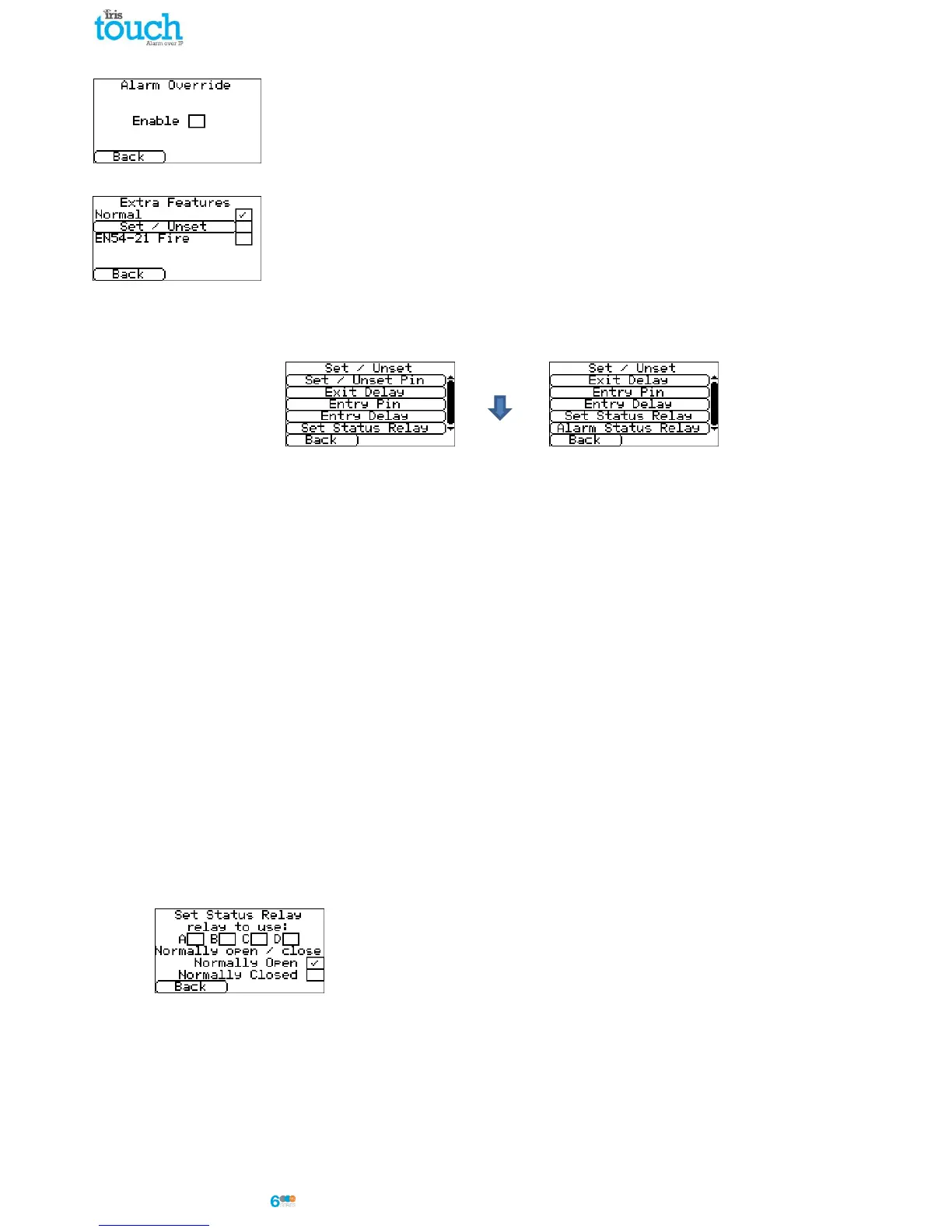 alarms (e.g. ATM monitoring), the IRIS Touch dialler can be setup to be a simple alarm panel using the pin