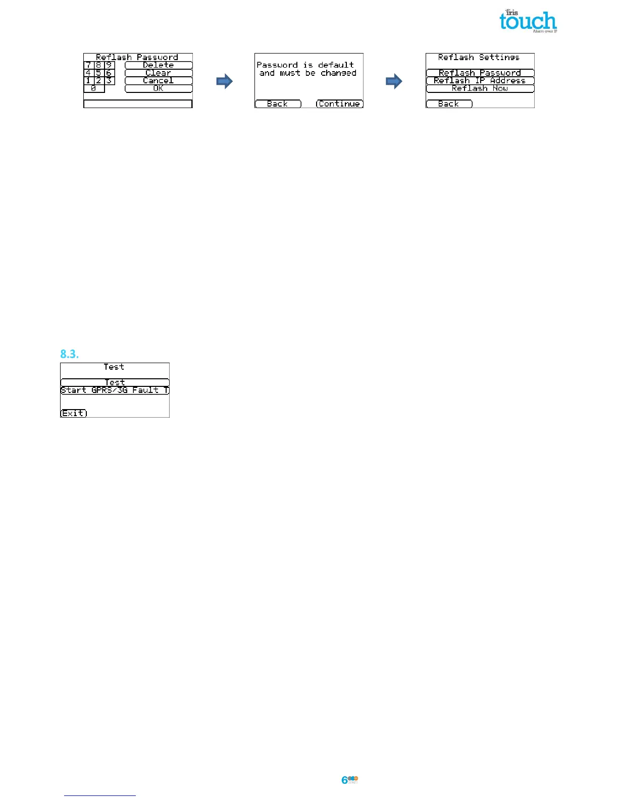 A reflash to update the IRIS Touch dialler to the latest software version can be initiated and the options are shown