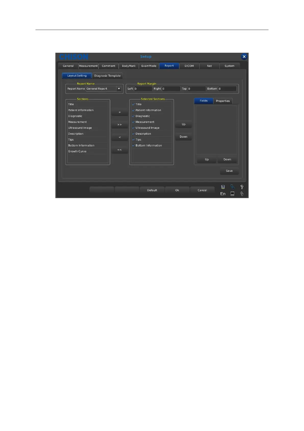 Report Margin: set the left, right, top and bottom space for the report margin.