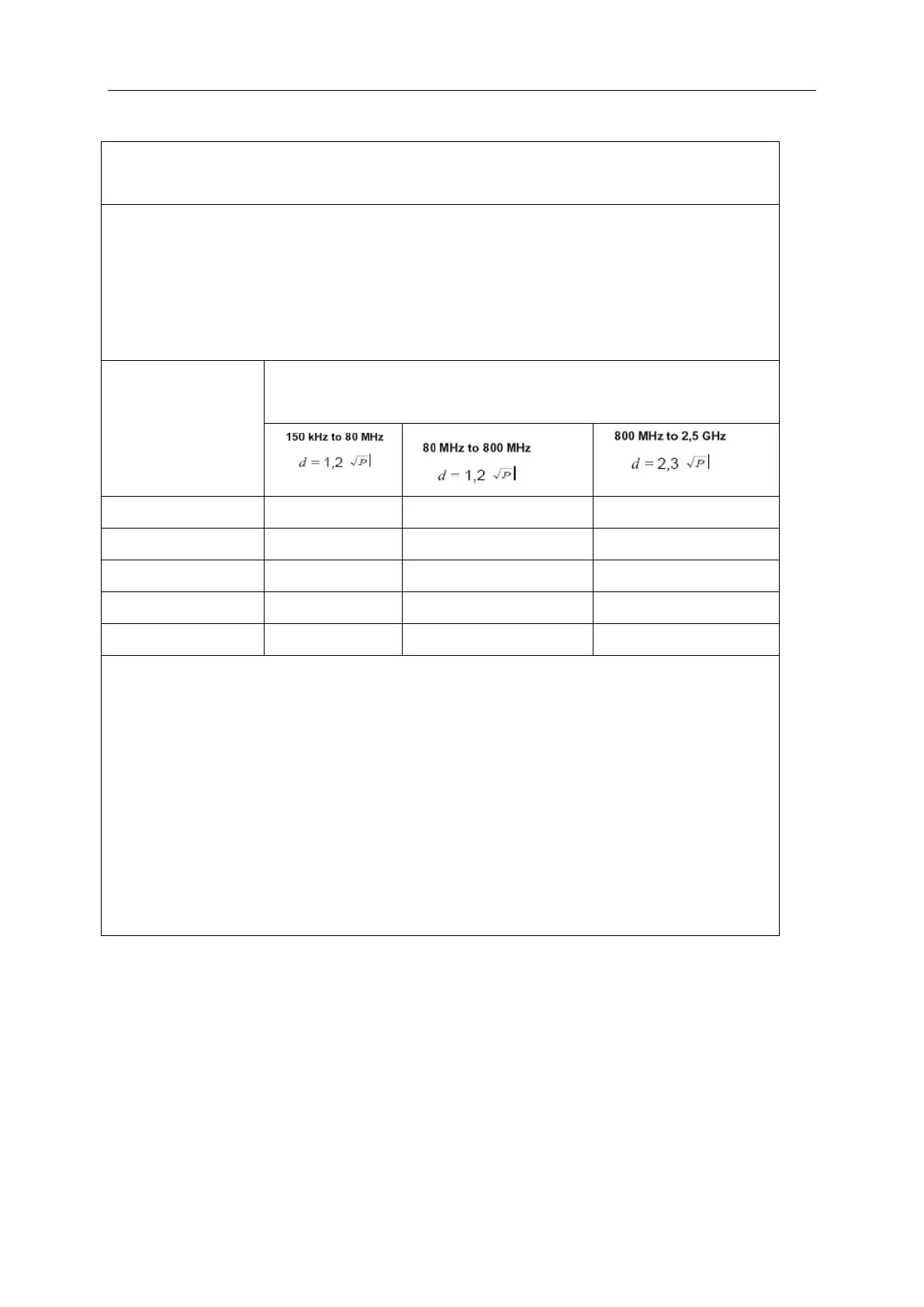 NOTE 1 At 80 MHz and 800 MHz, the separation distance for the higher frequency range