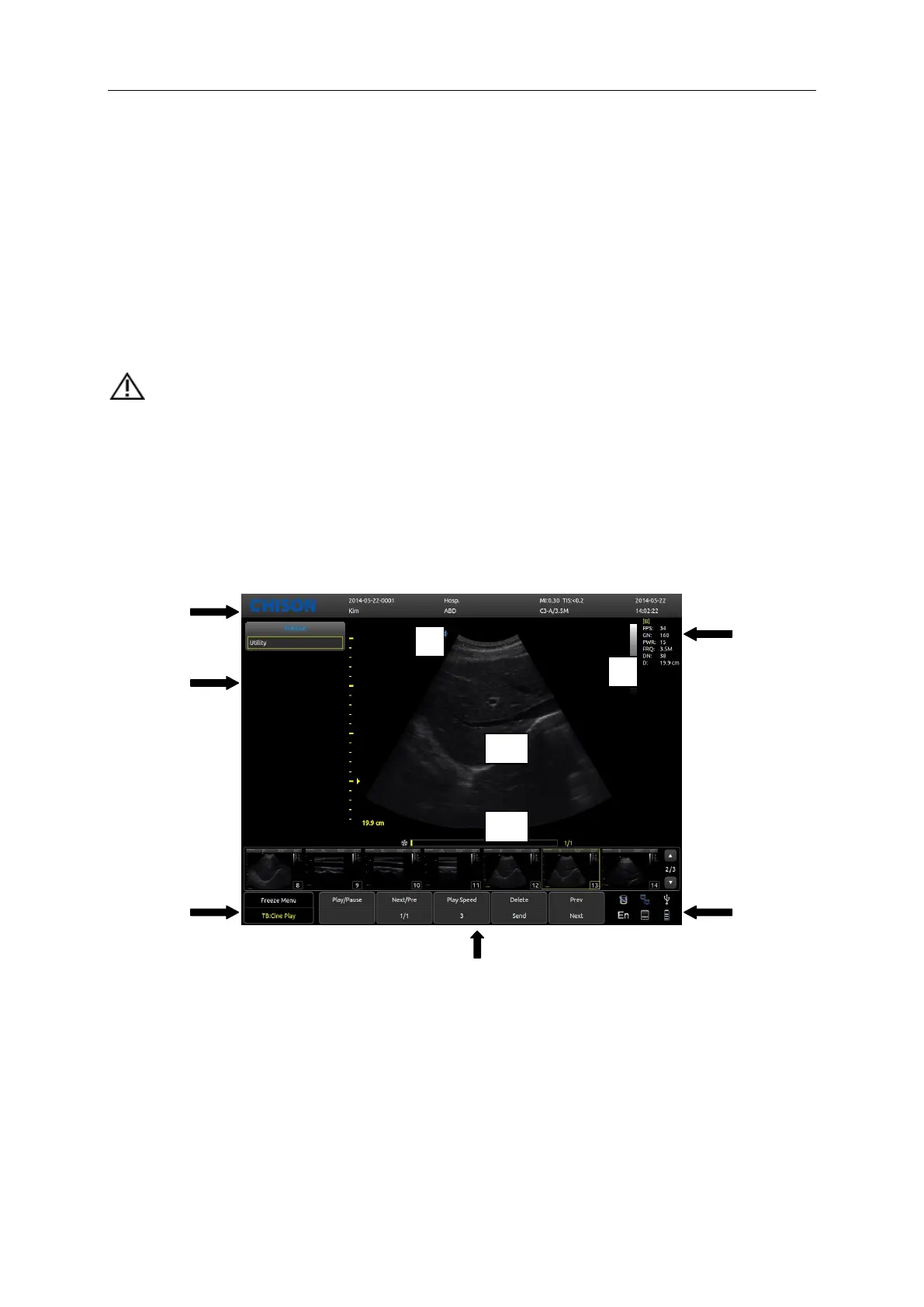 8, Start point of scanning 9, Image Region 10, Cine loop