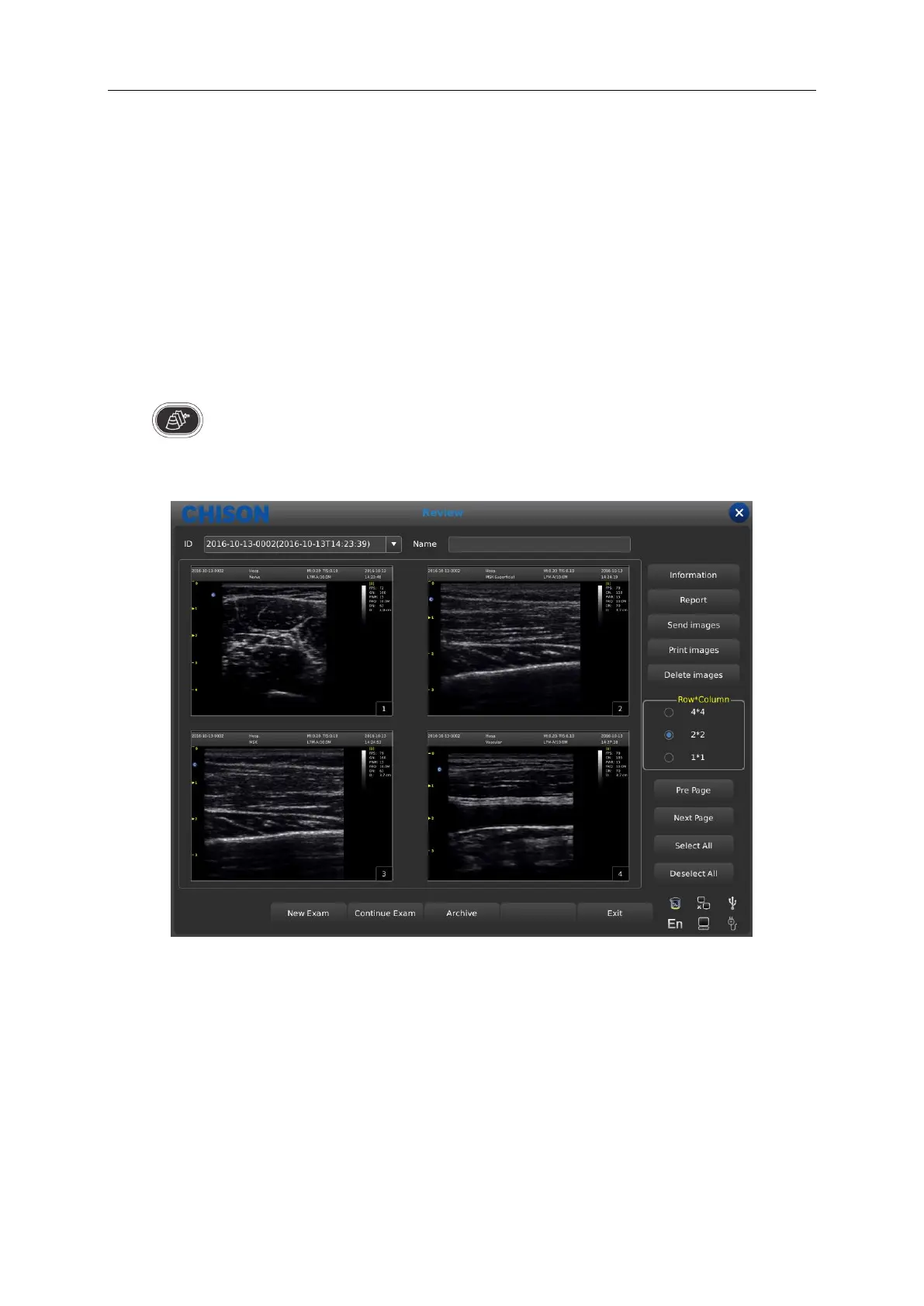 After recalling the images, press the [Send images] to send images to USB flash disk, DICOM