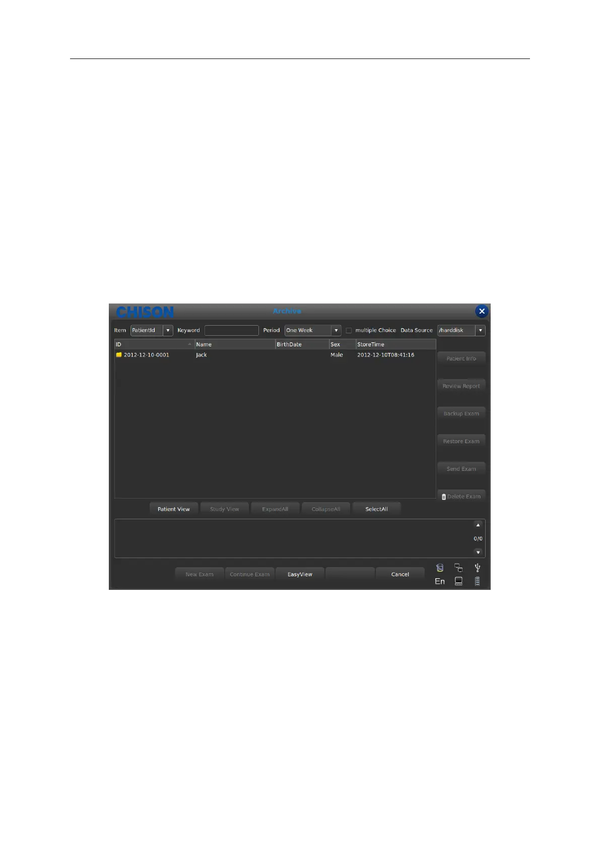 Continue Exam: Exit image browsing interface and go on checking current patient;