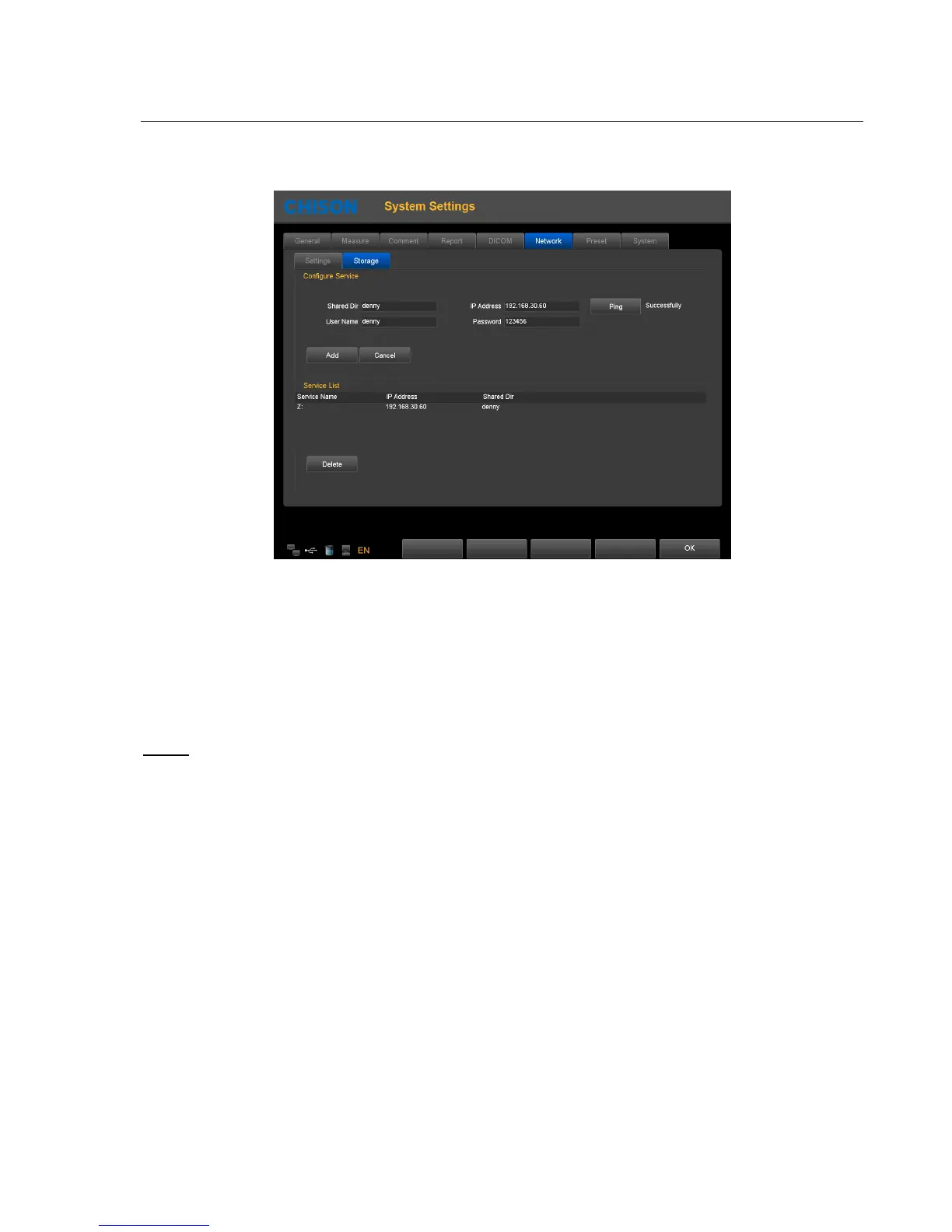 Delete: can delete the selected network storage service