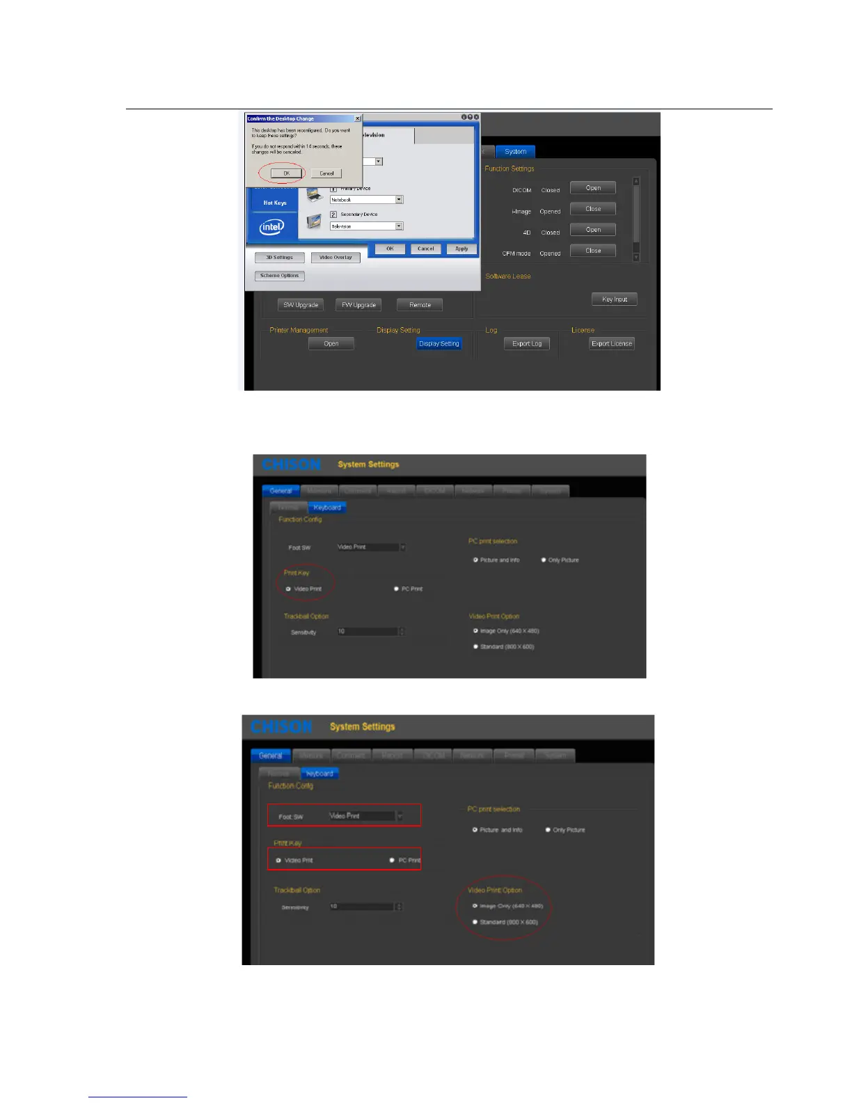 6 Choose “video print” under print key menu or Foot SW menu, and set the “video print option”.