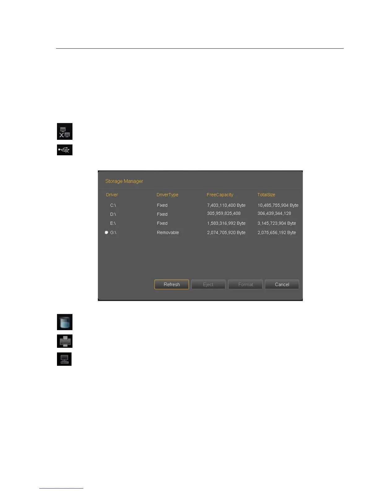 Display the status of current removable disks. If exist removable disks, click this icon can quickly