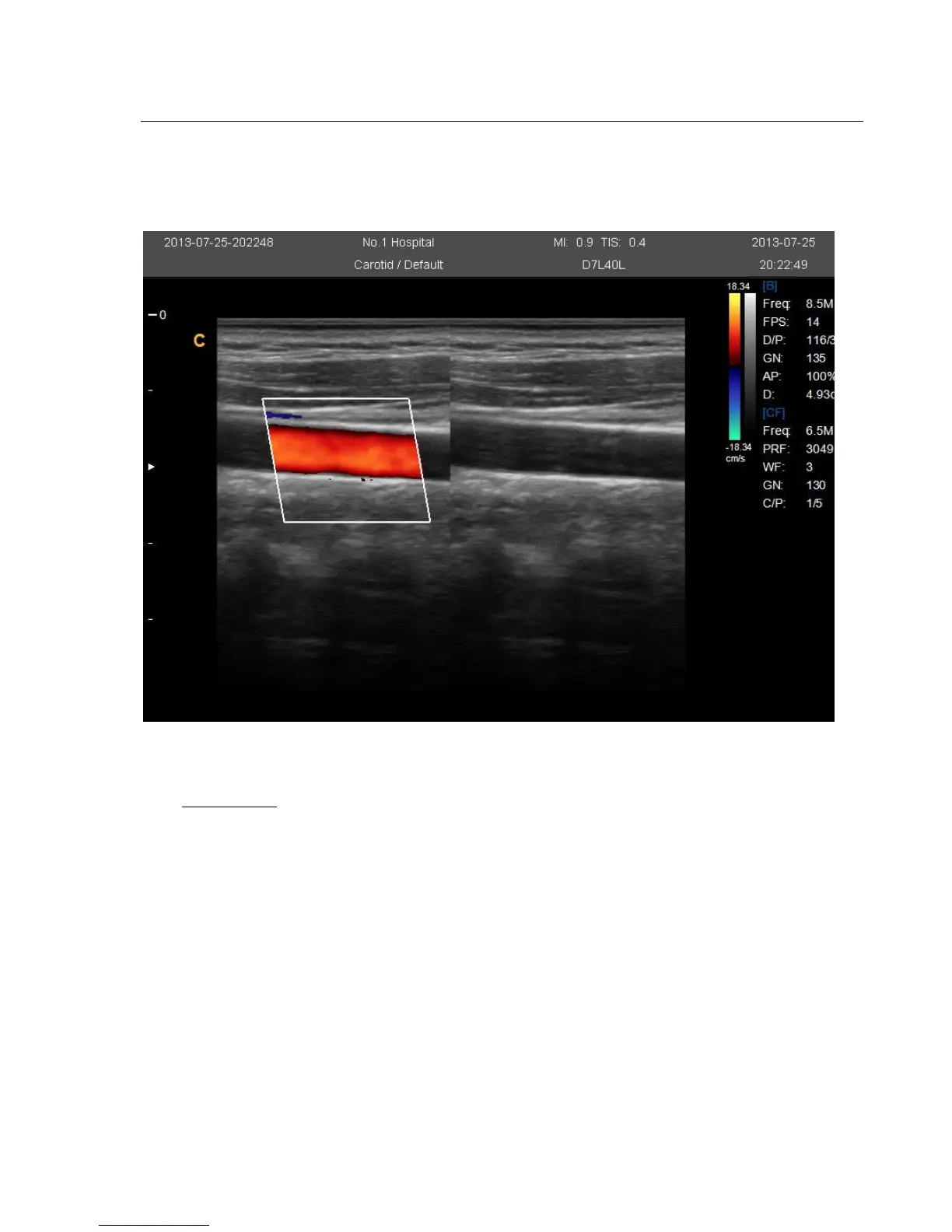 This system provides B mode image and M mode image at the same time. Press M knob to enter into B/M mode.