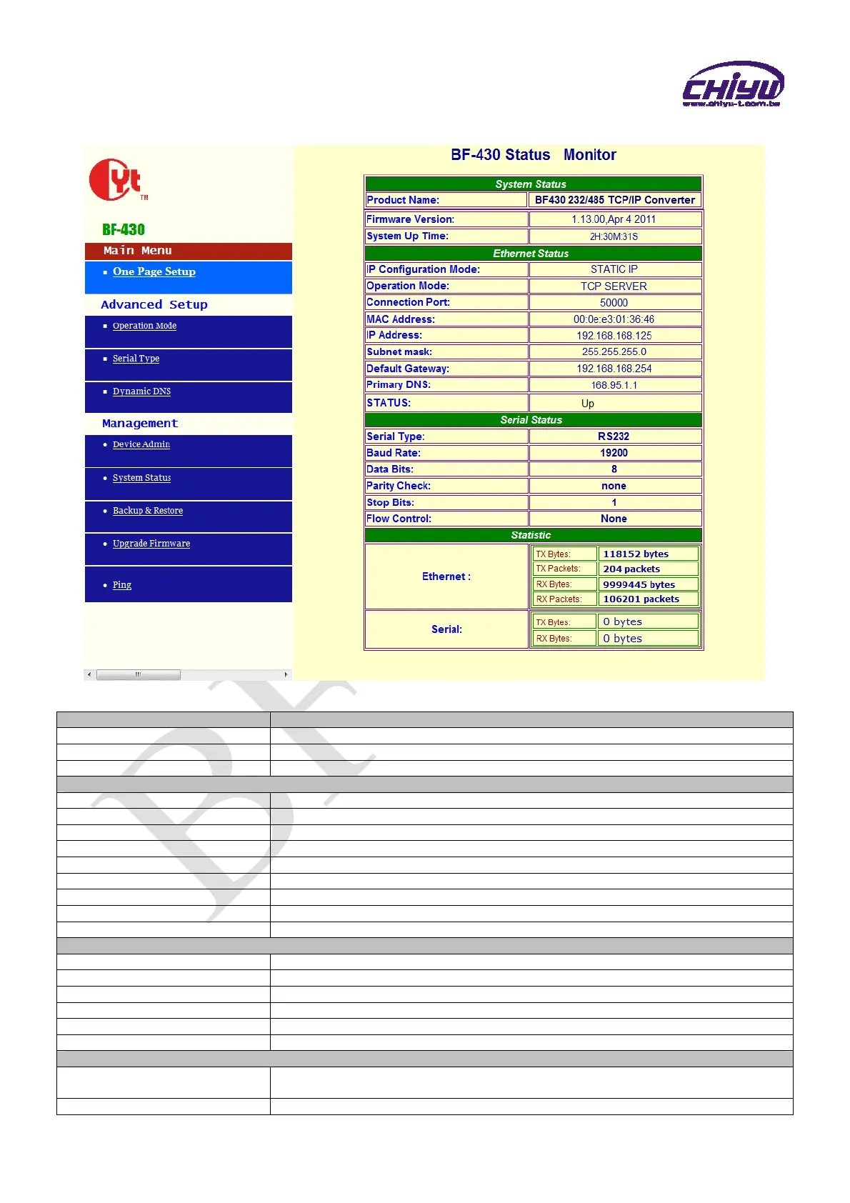 Product Name Display the product name:BF-430 232/485 TCP/IP Converter