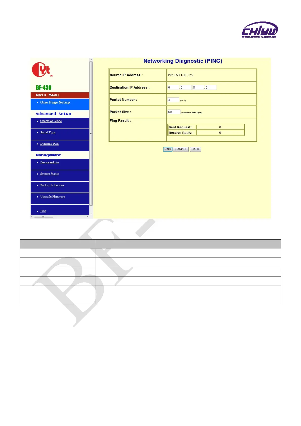 Set up the number of PING package, ranged 1 ~4 , the default 4