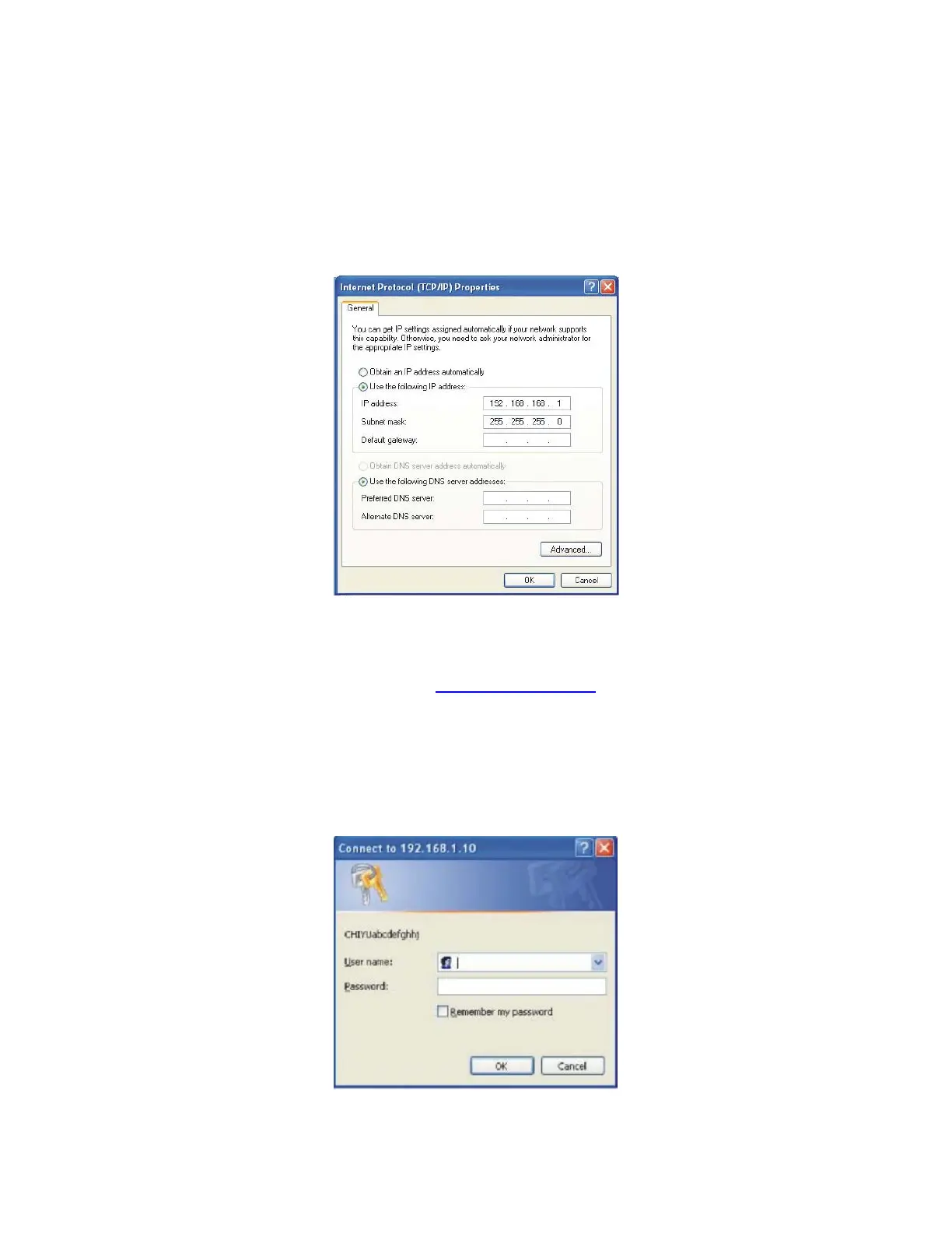 192.168.168.125) in the “IP Address” location (where xxx is a number between 1 and 254 used