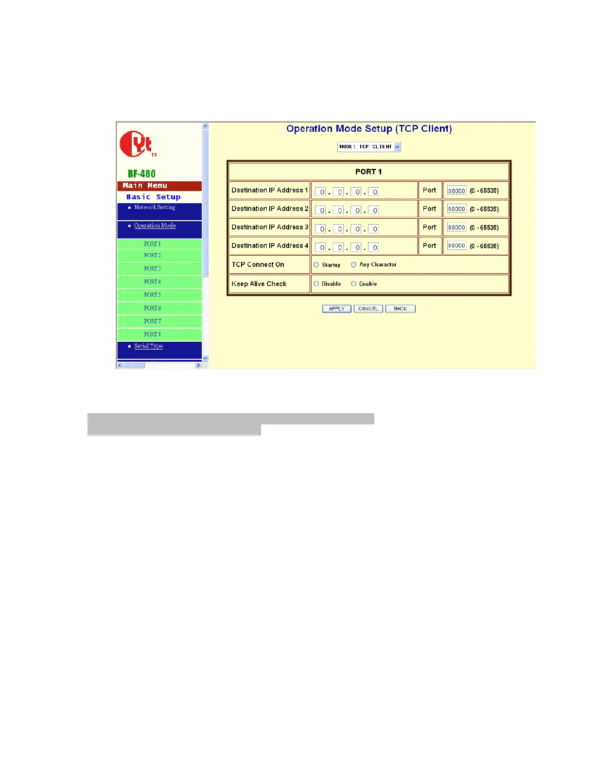 be received by peer is your concern, then you can set BF-480 as TCP Client. Be sure the value of