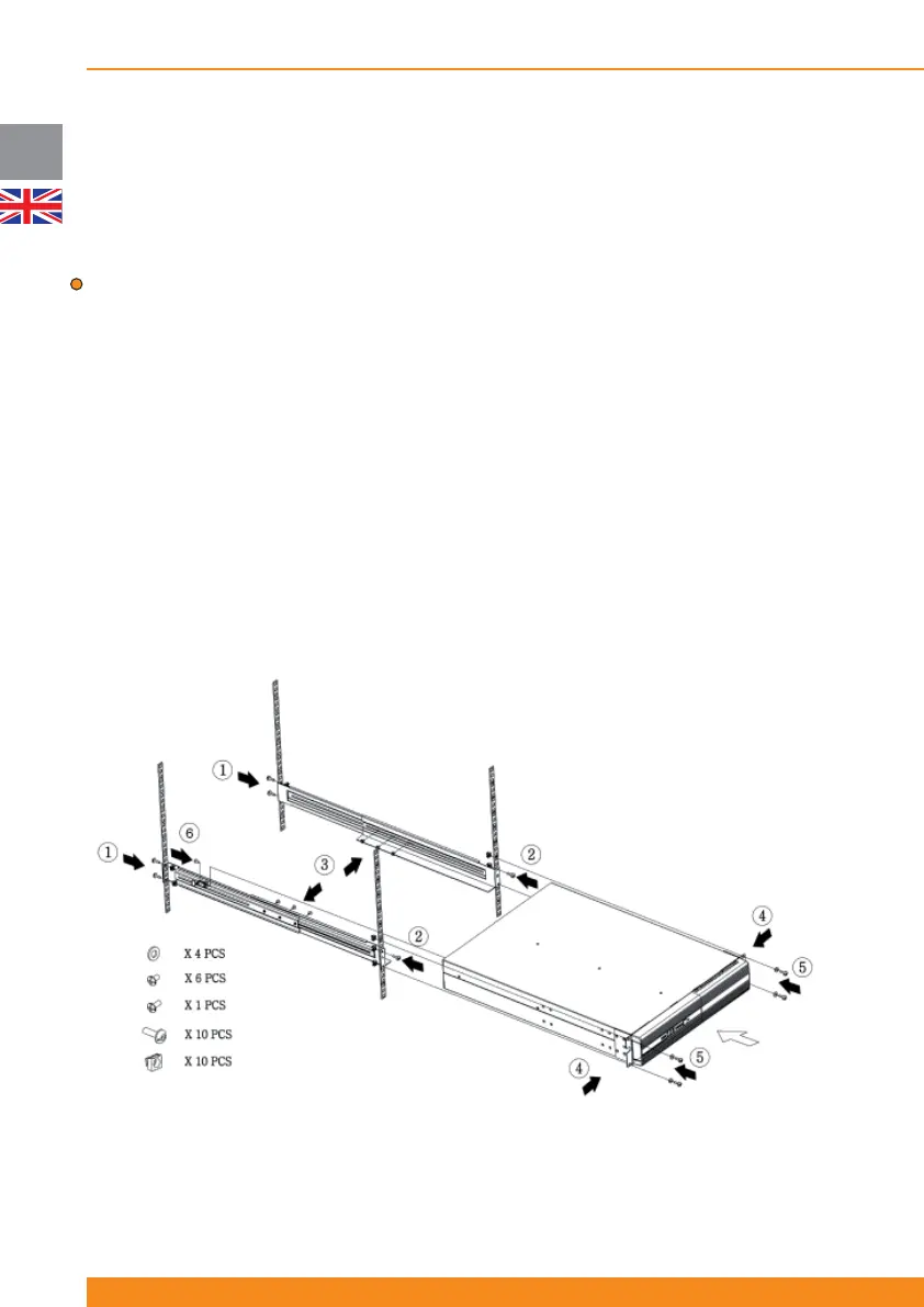 6. Attach rail to rear side of the UPS (fi xing point for safer transportation)