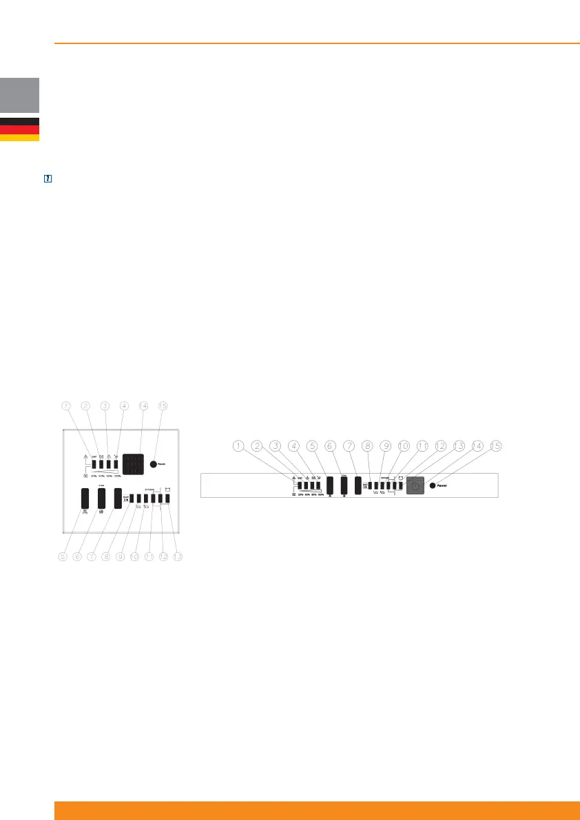 - Vier zusätzliche LEDs geben den Fehlerstatus, die Last in Prozent oder den Batterie Ladezustand in