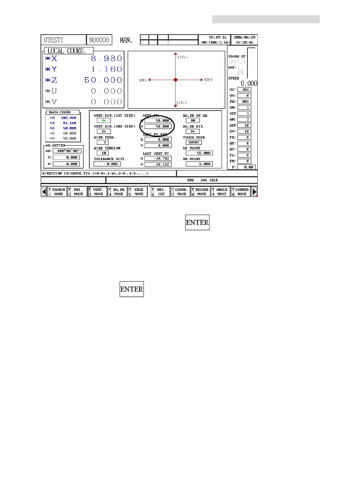 To copy machine coordinate to VERT. PT., move Green Bar to VERT. PT.,