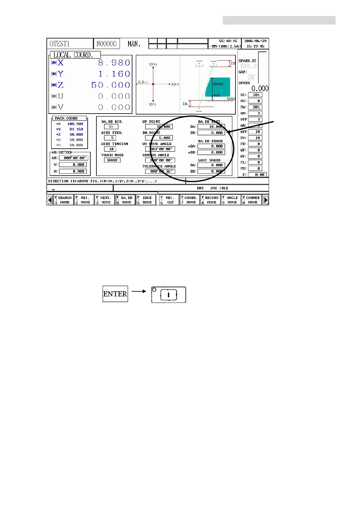 (9) Press to start DA, DB MOVE.