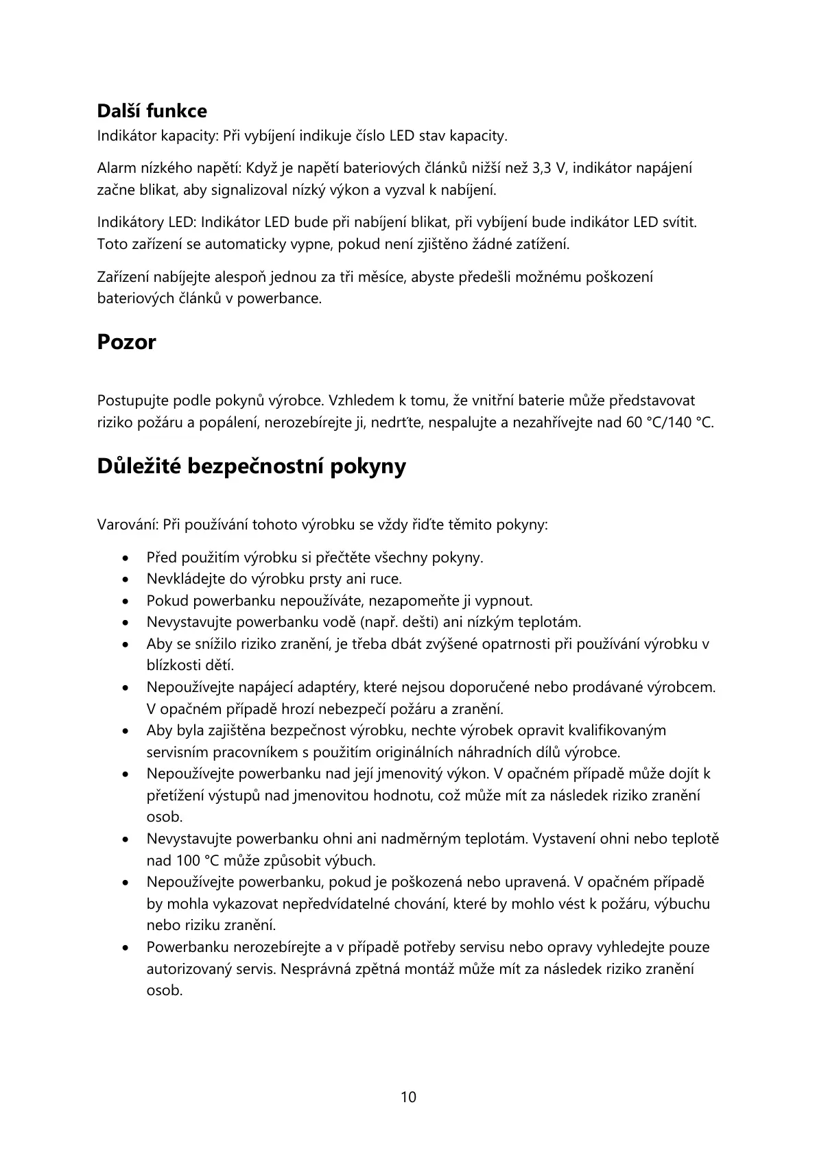 Nevystavujte powerbanku ohni ani nadměrným teplotám. Vystavení ohni nebo teplotě