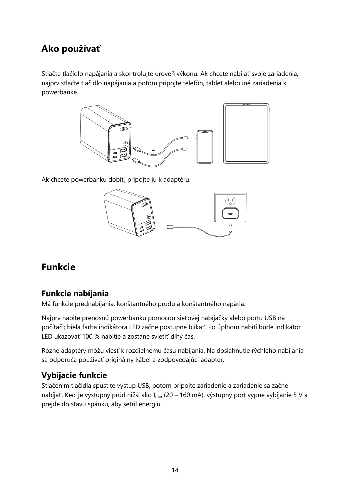 Stlačte tlačidlo napájania a skontrolujte úroveň výkonu. Ak chcete nabíjať svoje zariadenia,