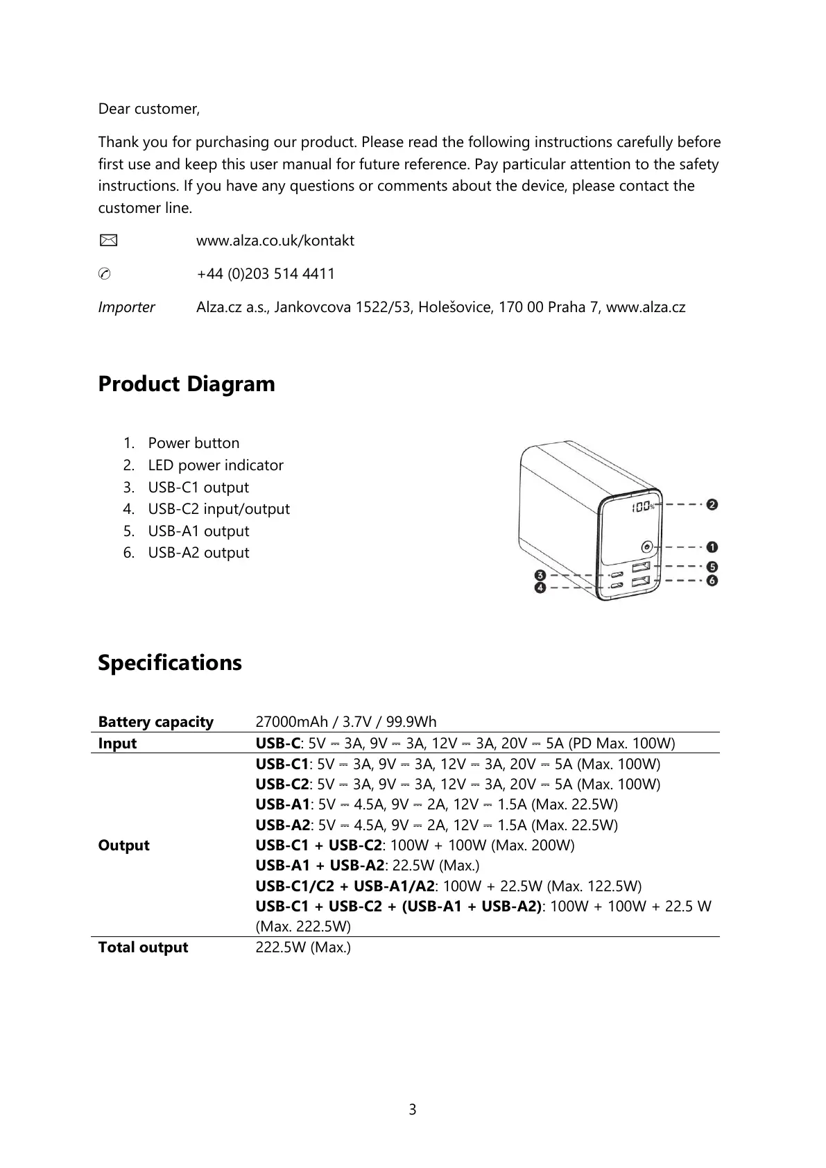 Importer Alza.cz a.s., Jankovcova 1522/53, Holešovice, 170 00 Praha 7, www.alza.cz
