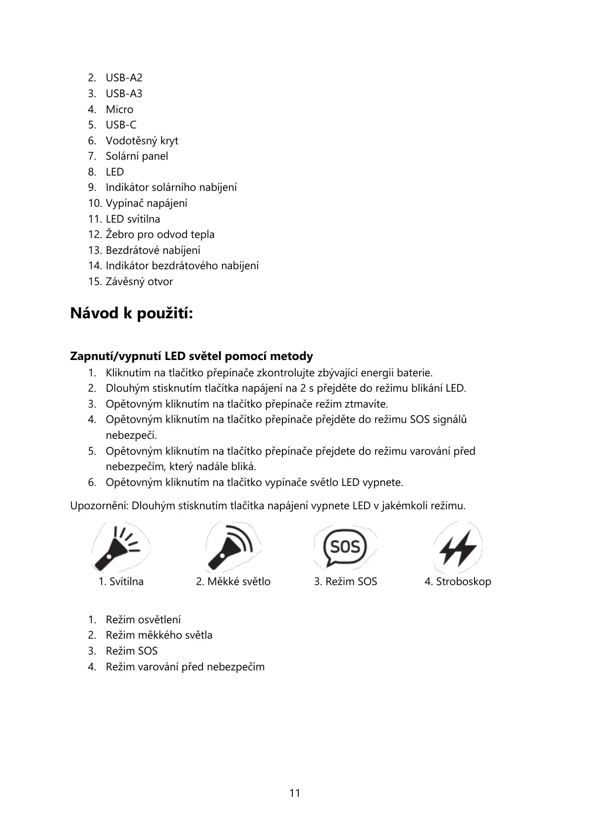 Upozornění: Dlouhým stisknutím tlačítka napájení vypnete LED v jakémkoli režimu.