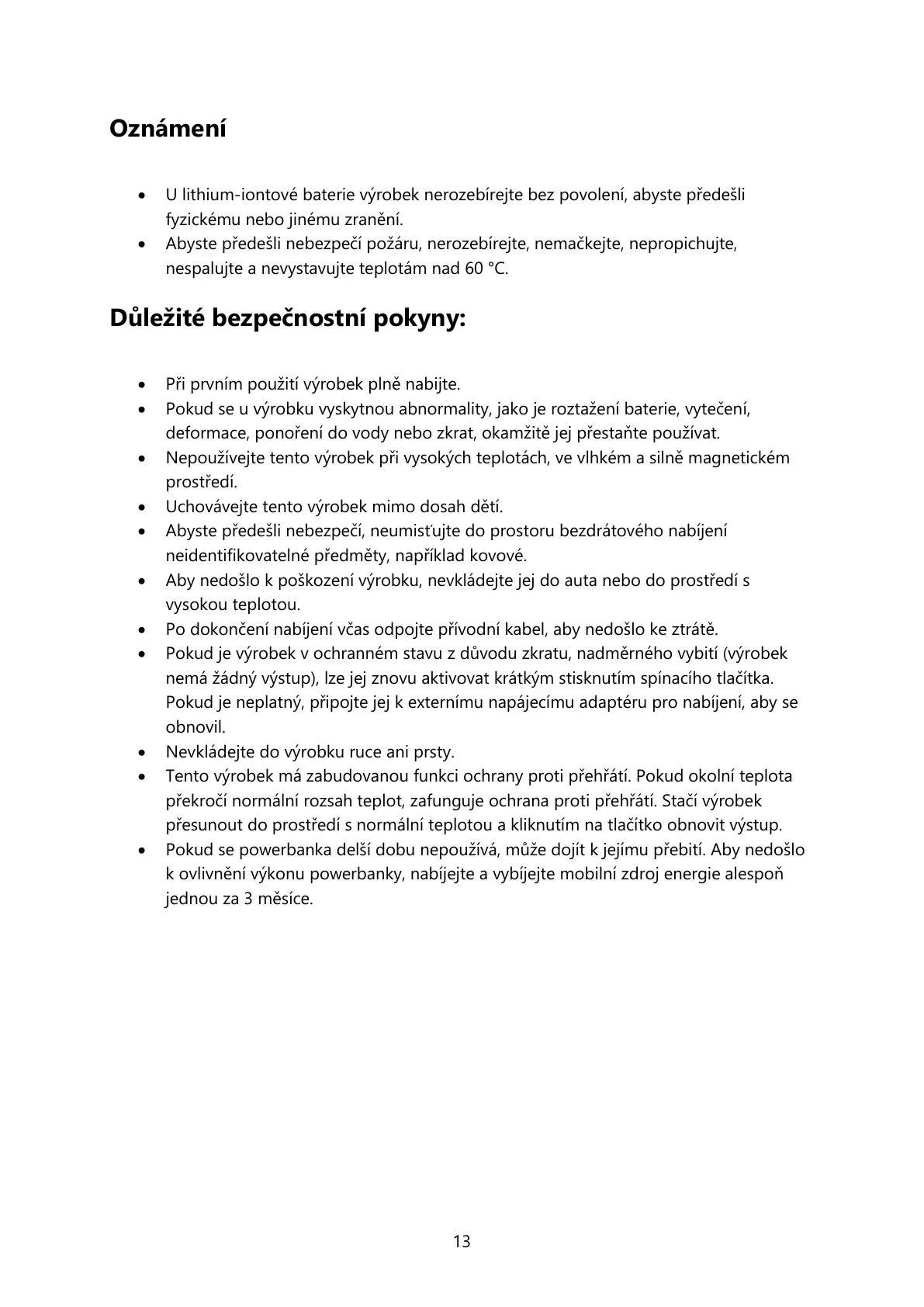 Abyste předešli nebezpečí požáru, nerozebírejte, nemačkejte, nepropichujte,
