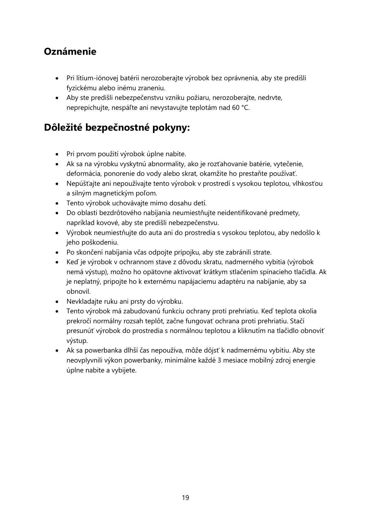 Ak sa powerbanka dlhší čas nepoužíva, môže dôjsť k nadmernému vybitiu. Aby ste