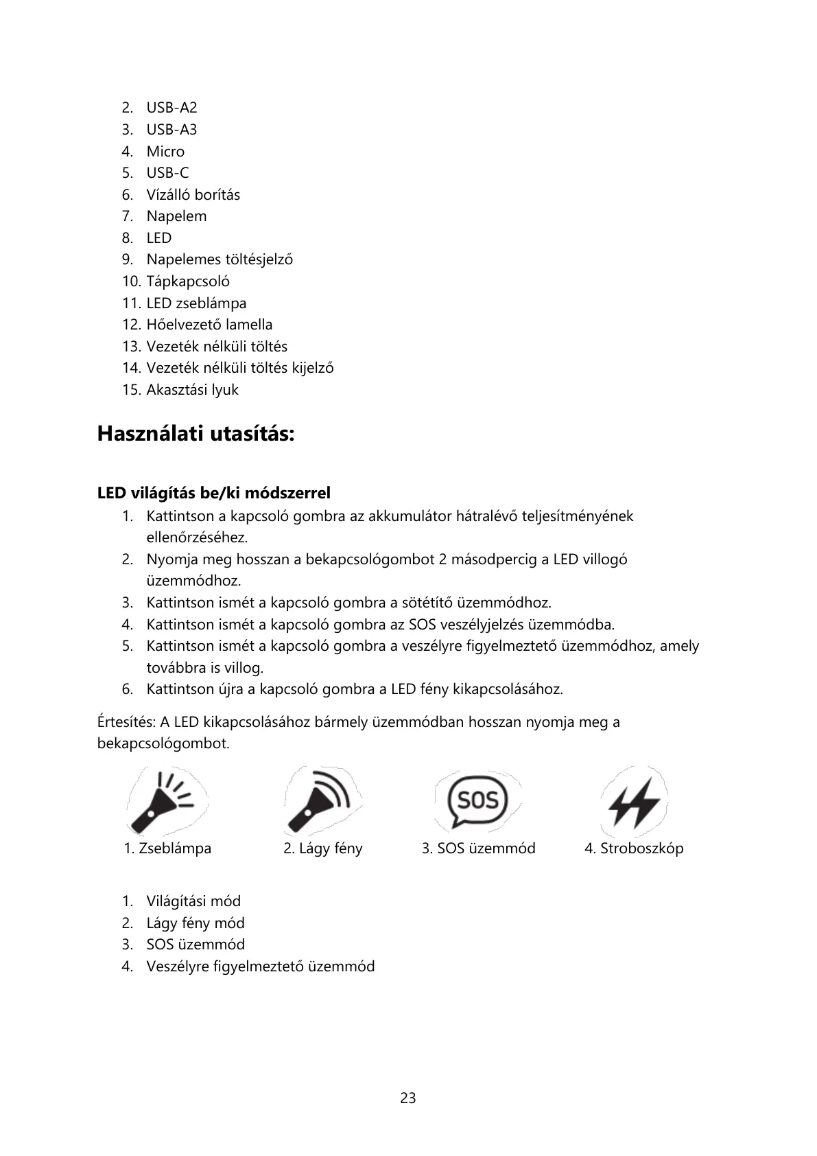 Értesítés: A LED kikapcsolásához bármely üzemmódban hosszan nyomja meg a