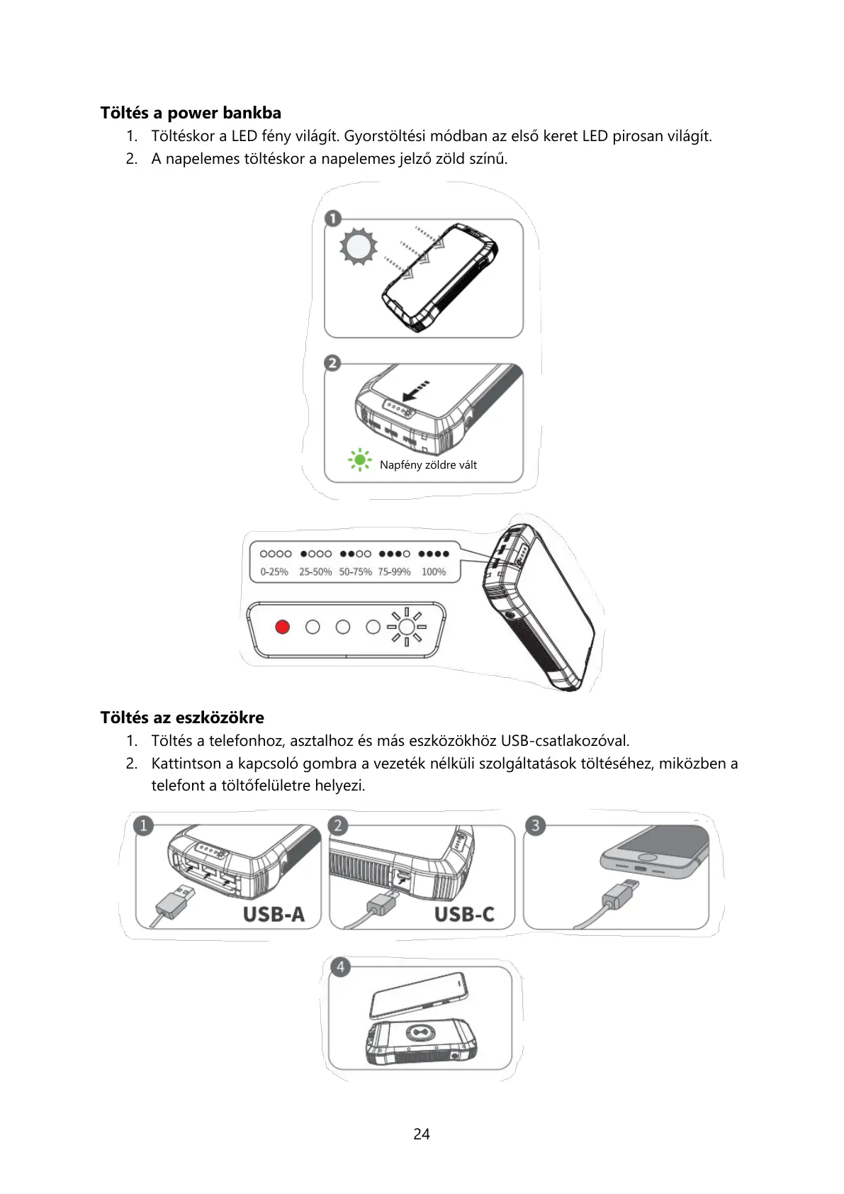 1. Töltés a telefonhoz, asztalhoz és más eszközökhöz USB-csatlakozóval.