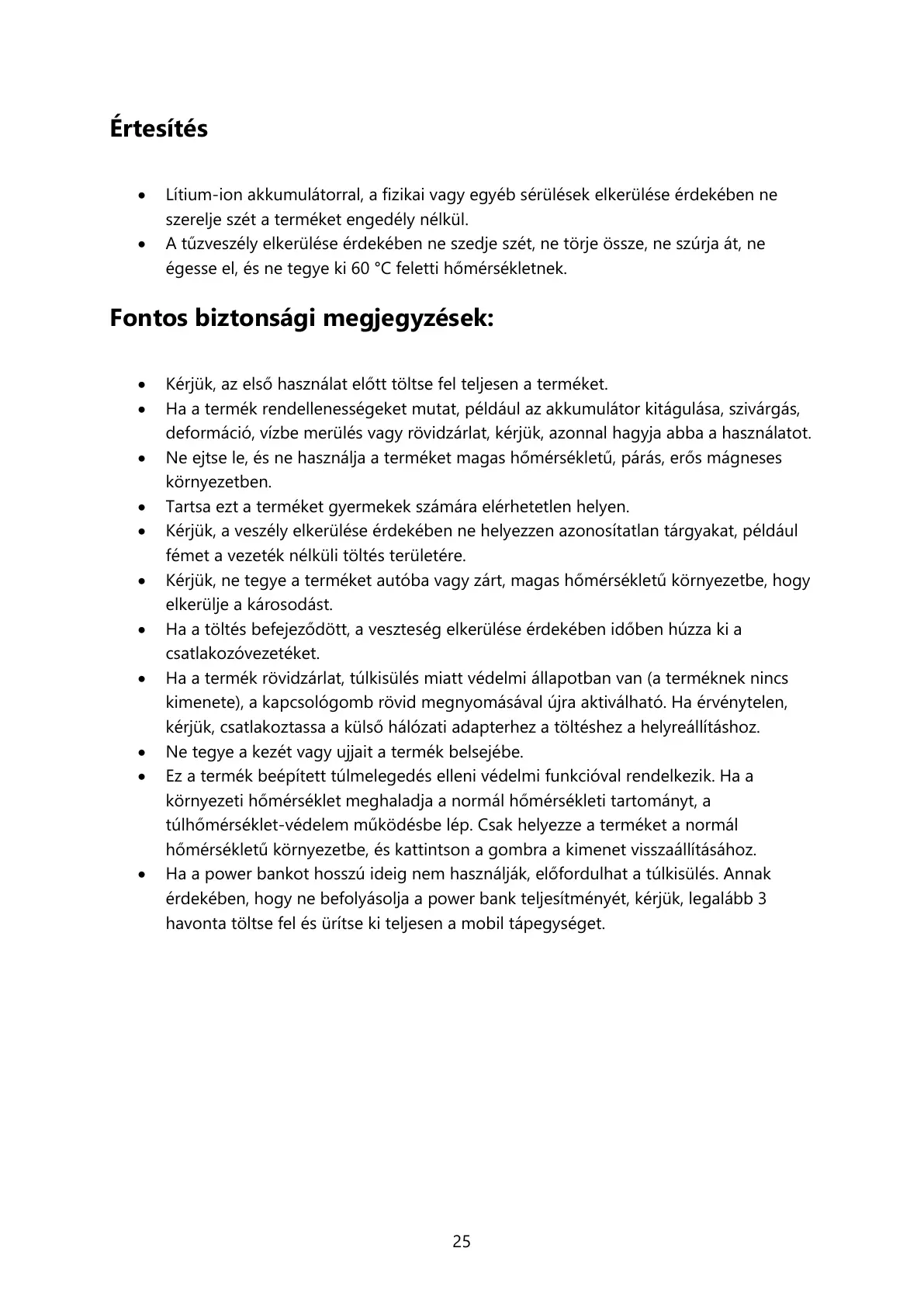 érdekében, hogy ne befolyásolja a power bank teljesítményét, kérjük, legalább 3