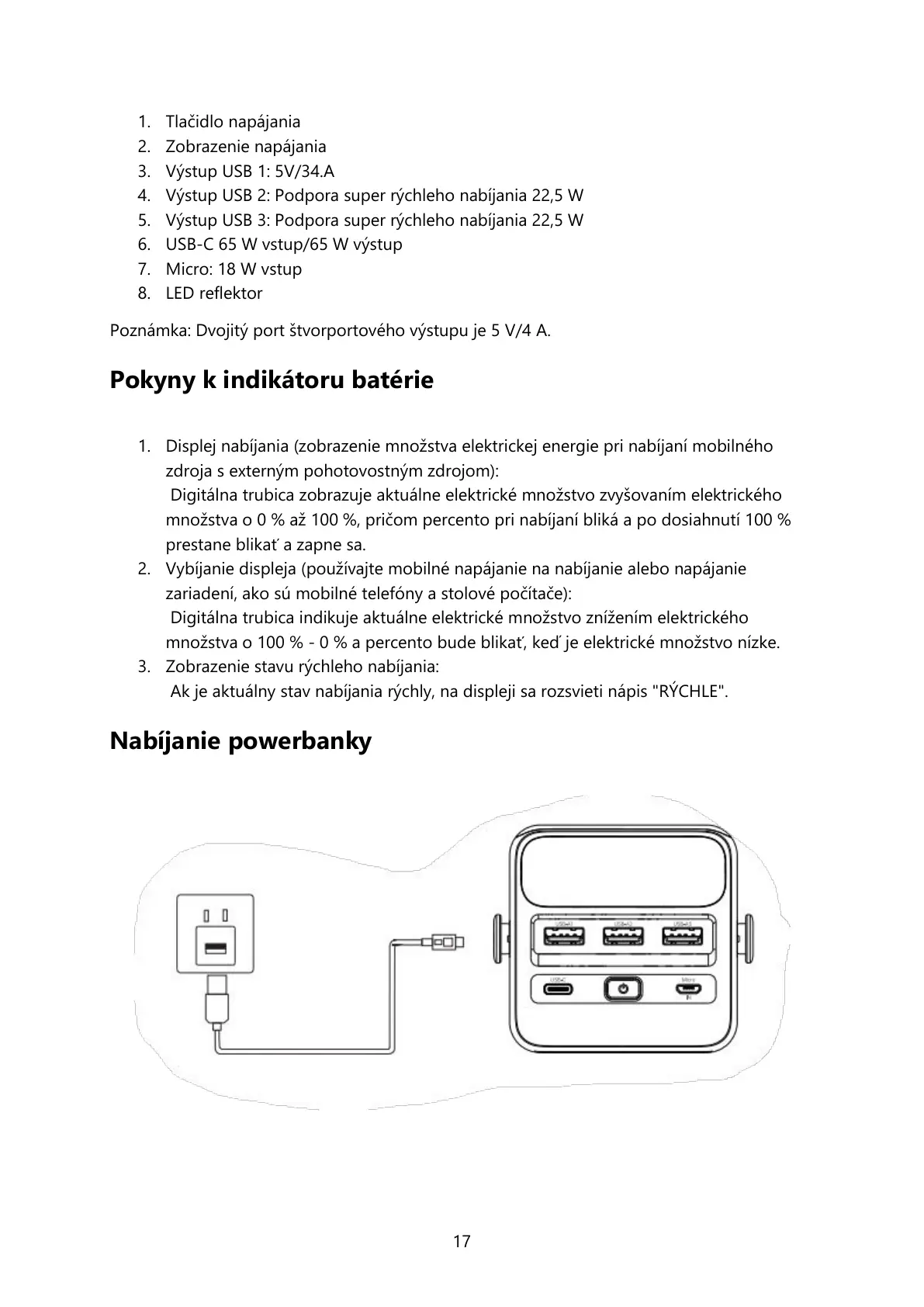 5. Výstup USB 3: Podpora super rýchleho nabíjania 22,5 W