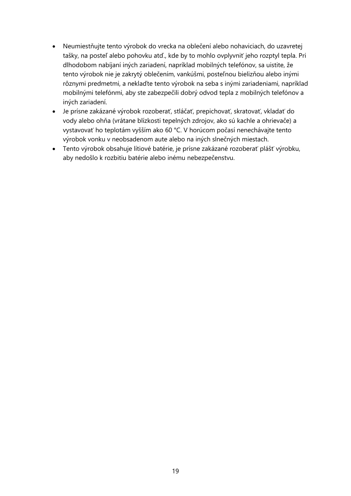 aby nedošlo k rozbitiu batérie alebo inému nebezpečenstvu.