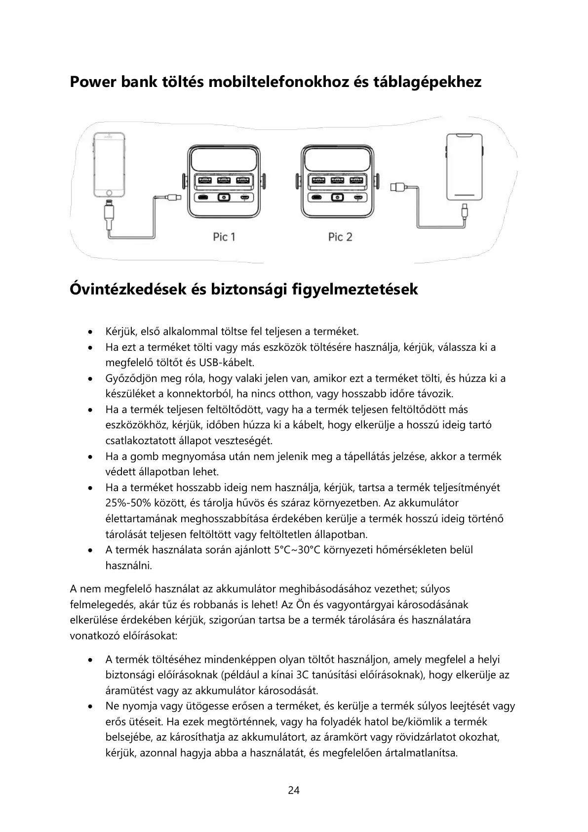 25%-50% között, és tárolja hűvös és száraz környezetben. Az akkumulátor