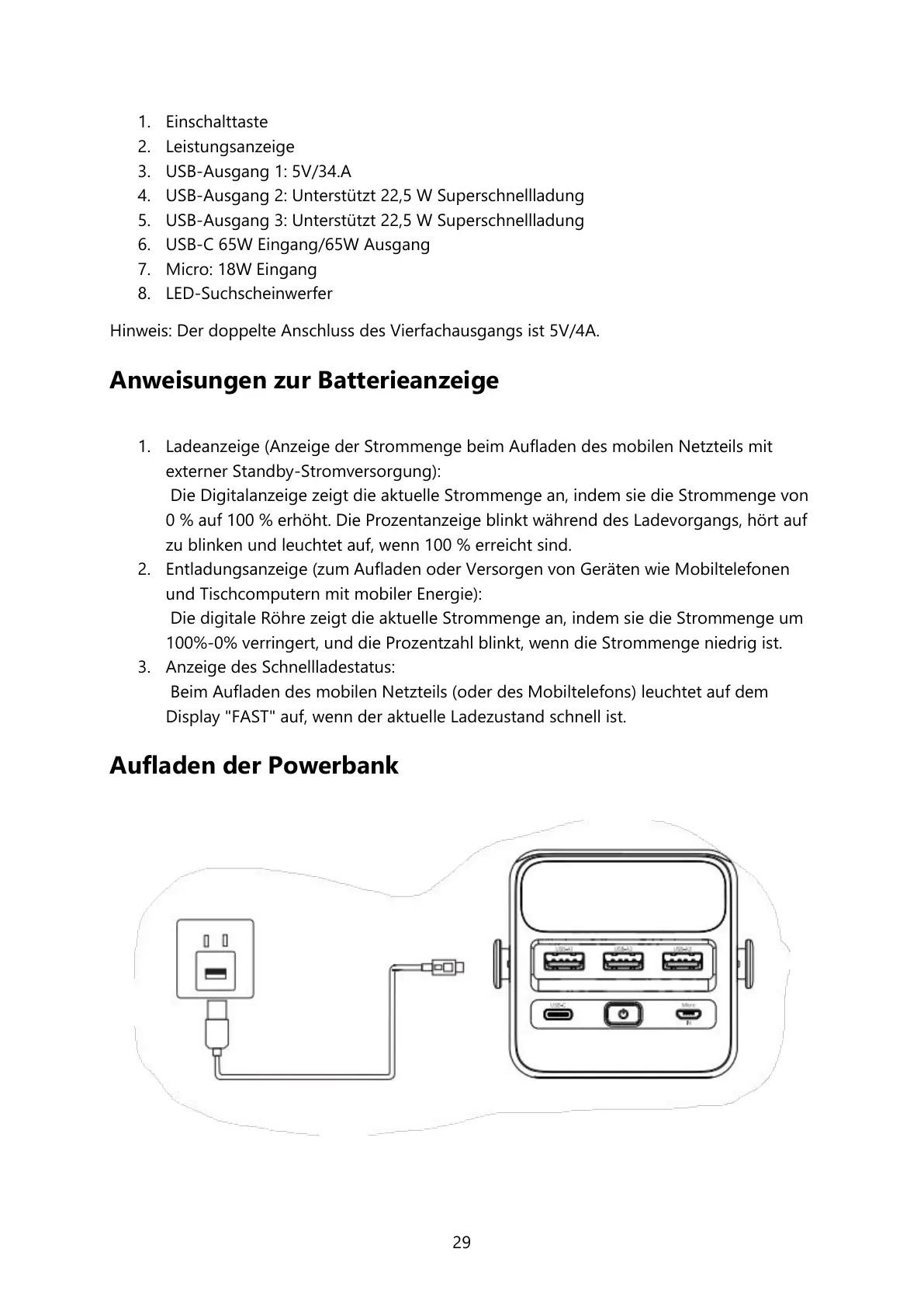 4. USB-Ausgang 2: Unterstützt 22,5 W Superschnellladung
