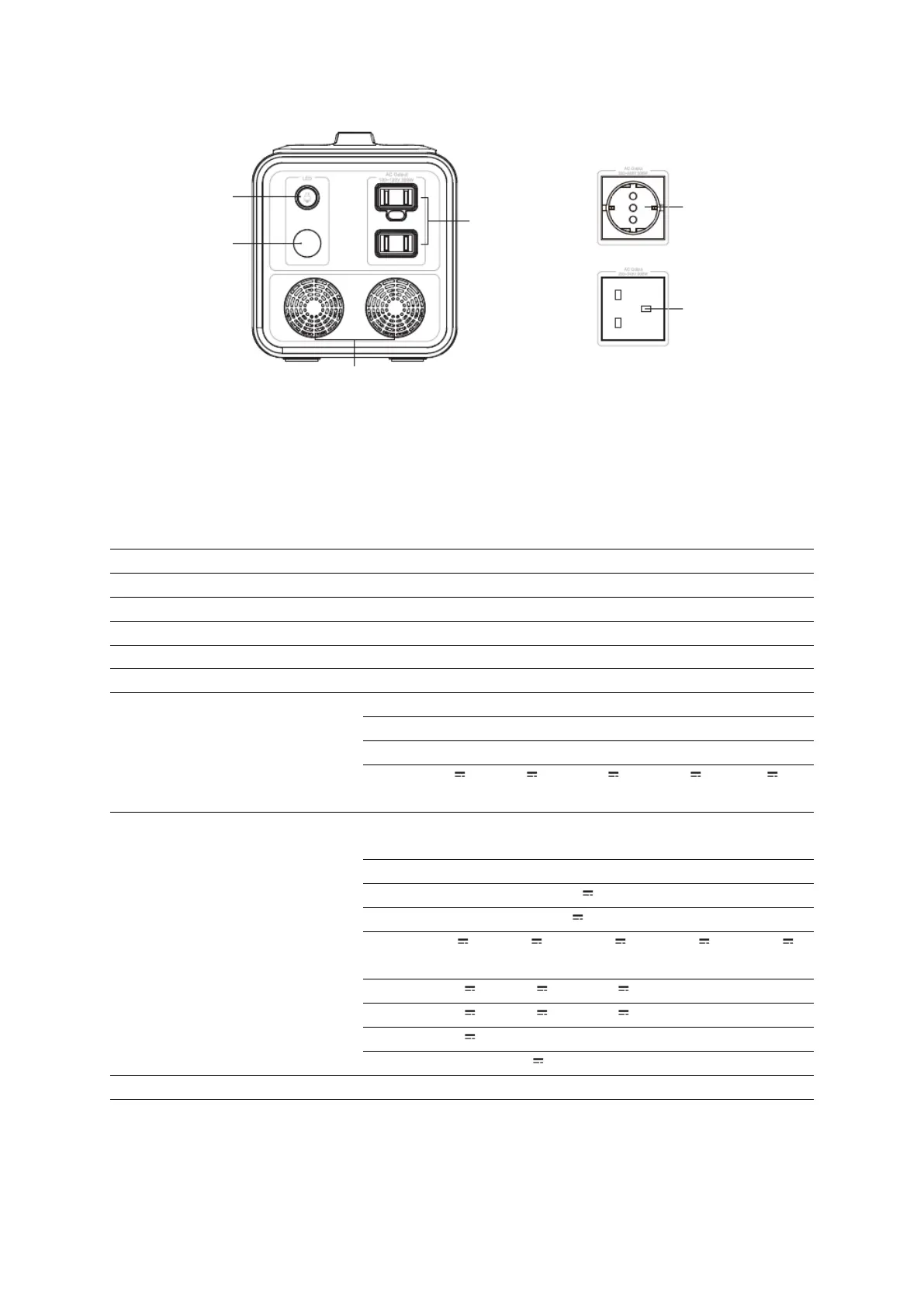 1× USB, 3× USB-A, 3× DC, 3× AC, 1× Zásuvka do auta